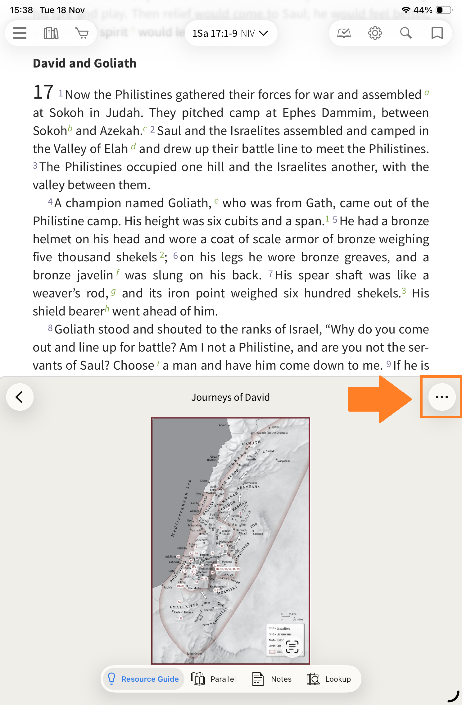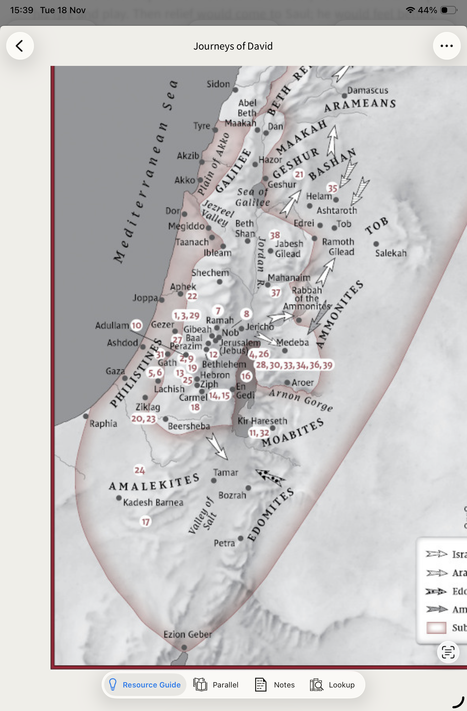 There is also a map on the Journeys of David under the Maps section that you can open.
