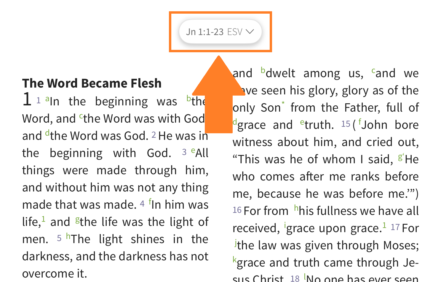 Grid View is the default for verse-based resources, such as Bibles and commentaries. It allows you to quickly select a book, chapter, and verse.