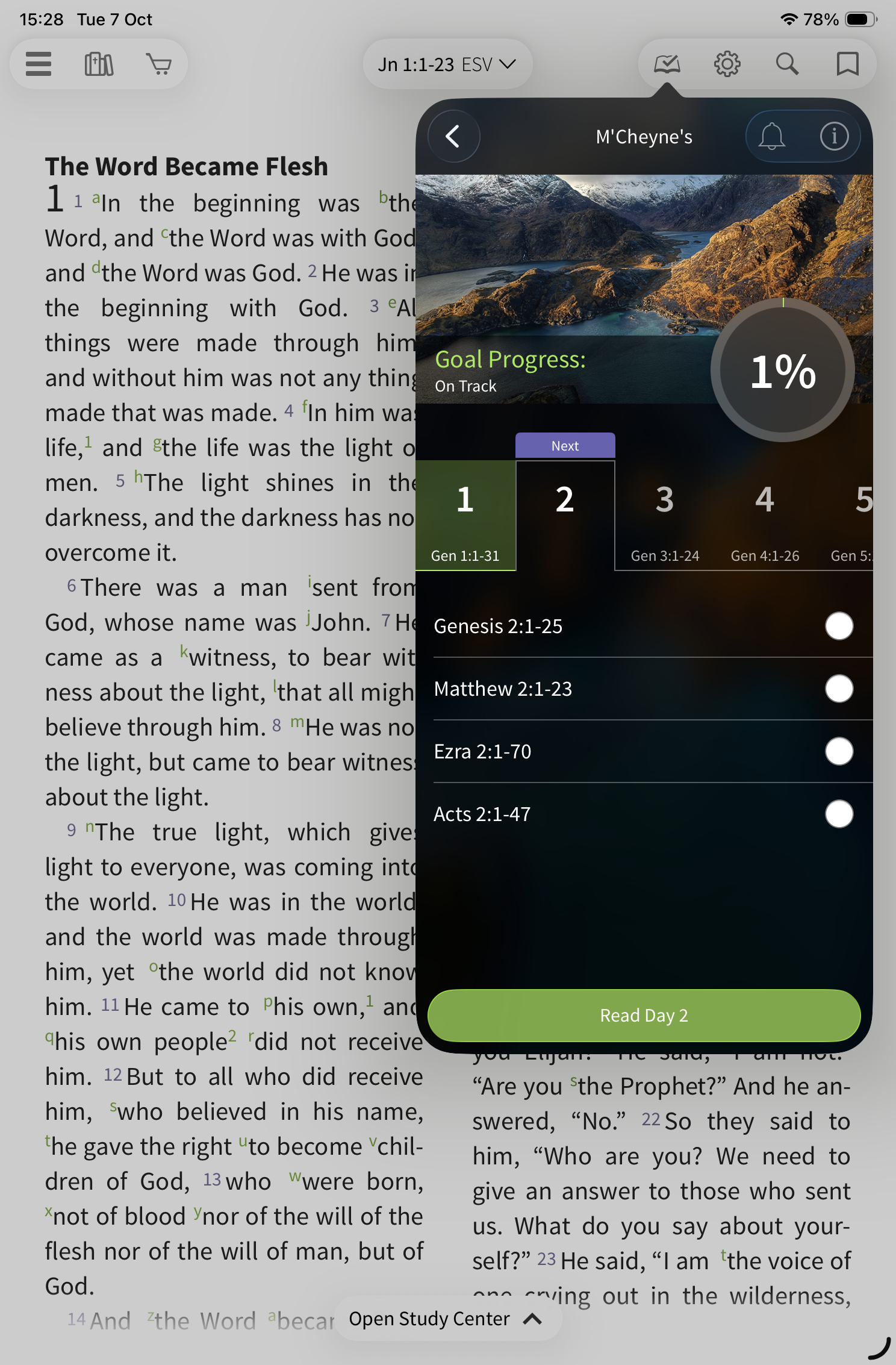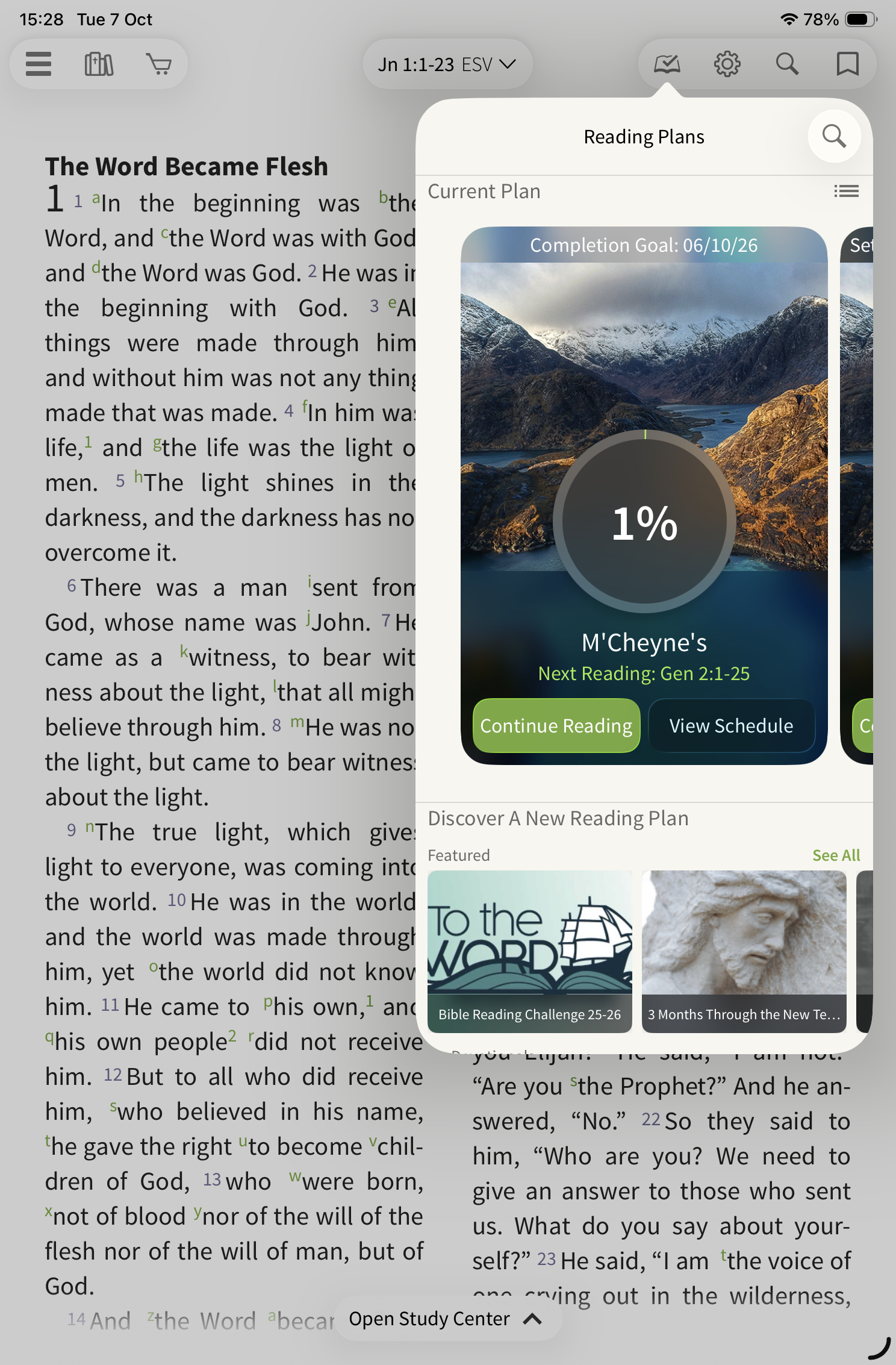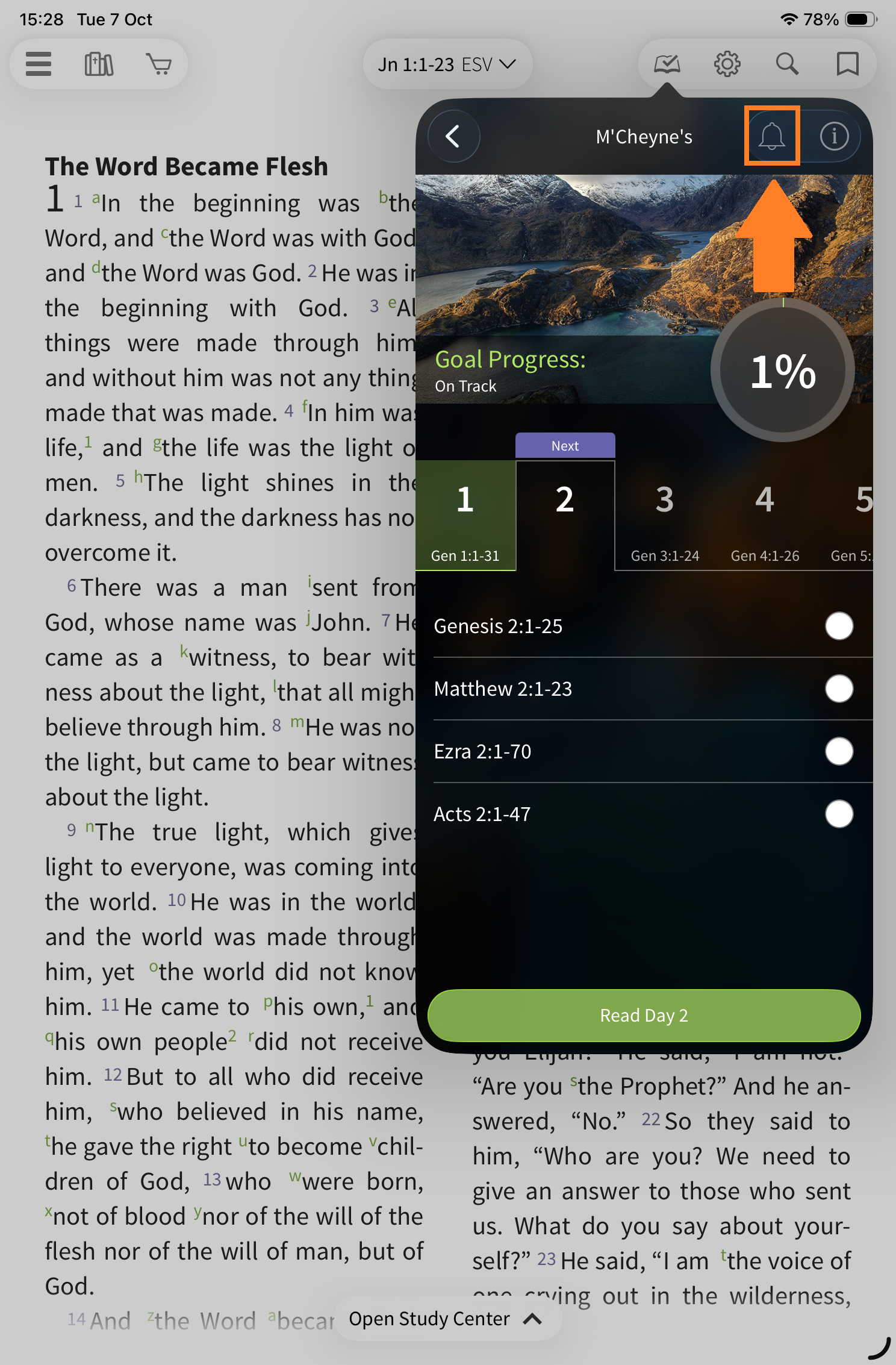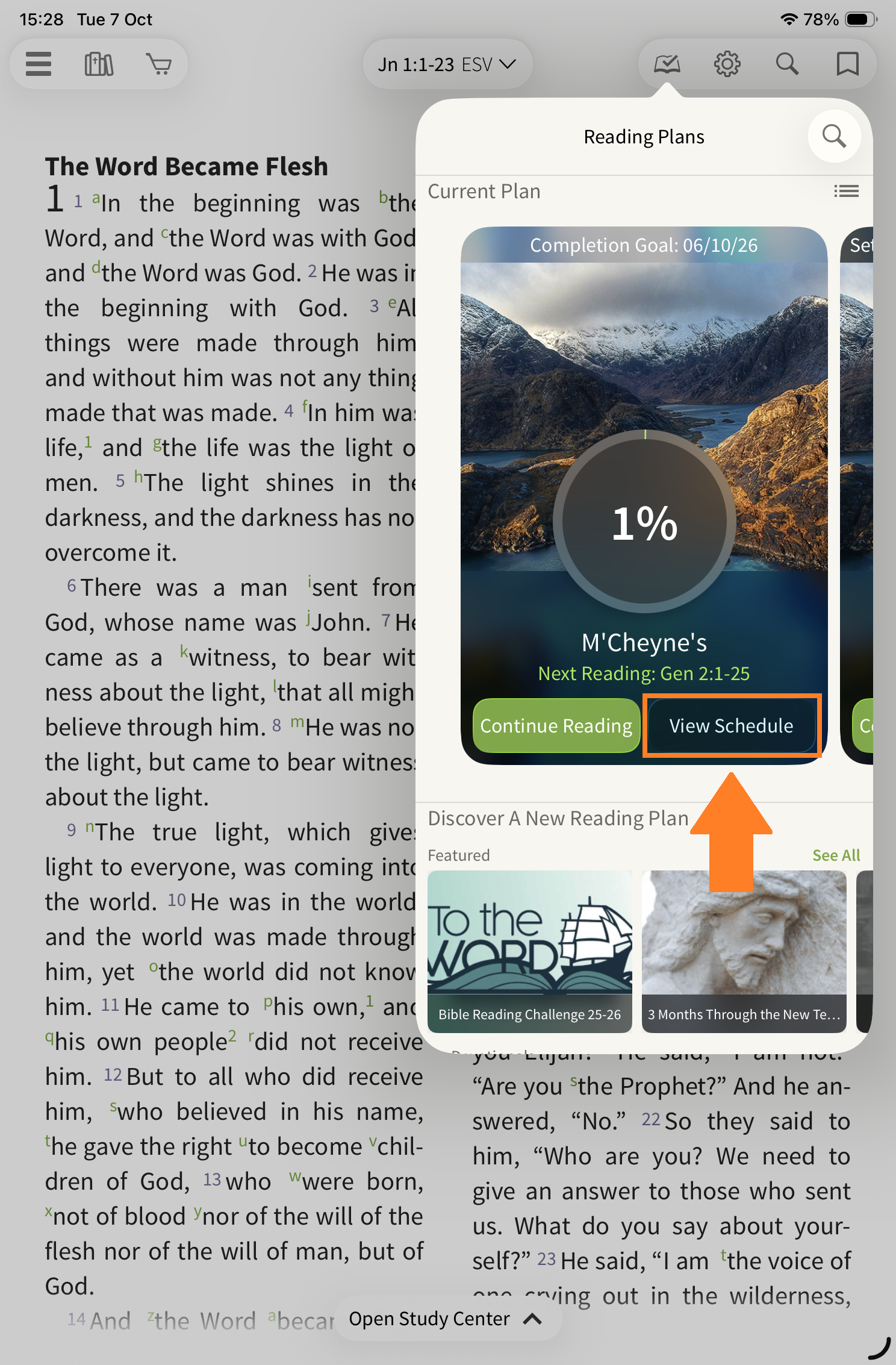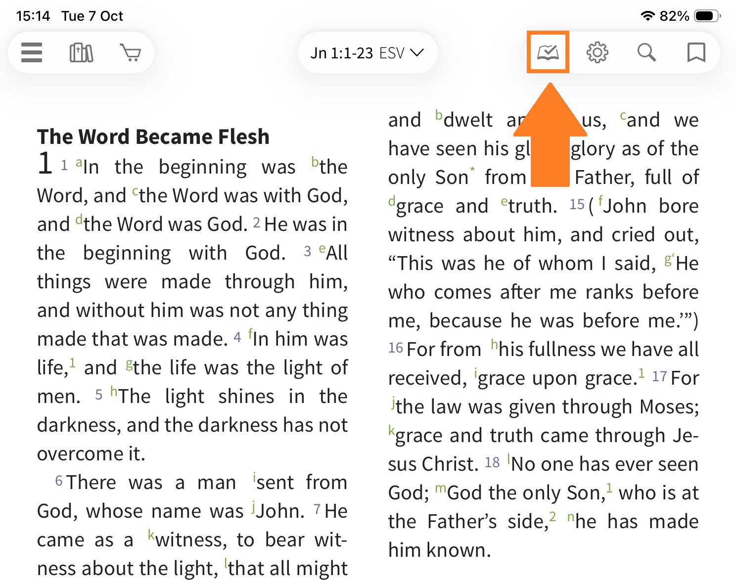 To start, select the reading plan icon on the toolbar.