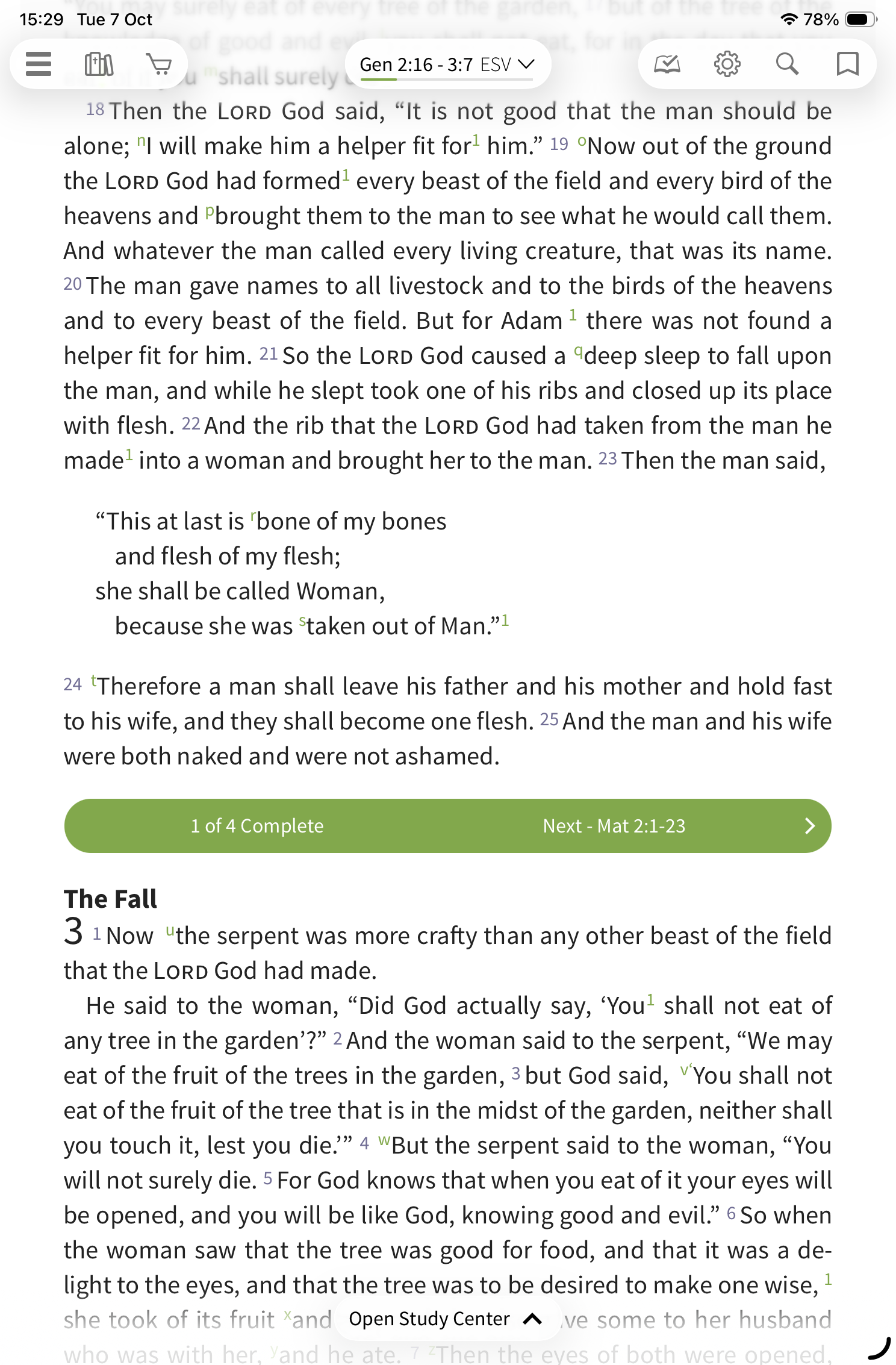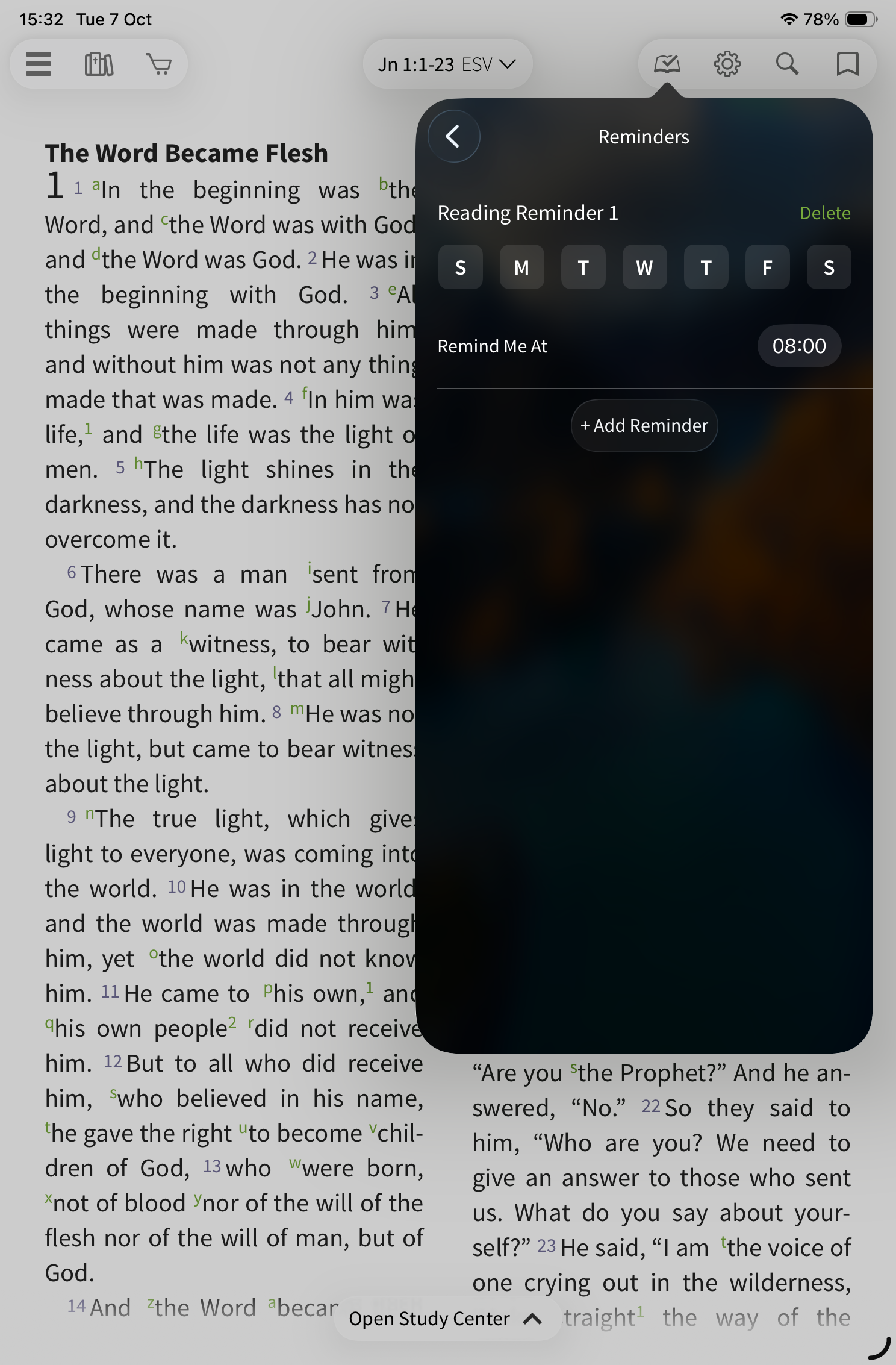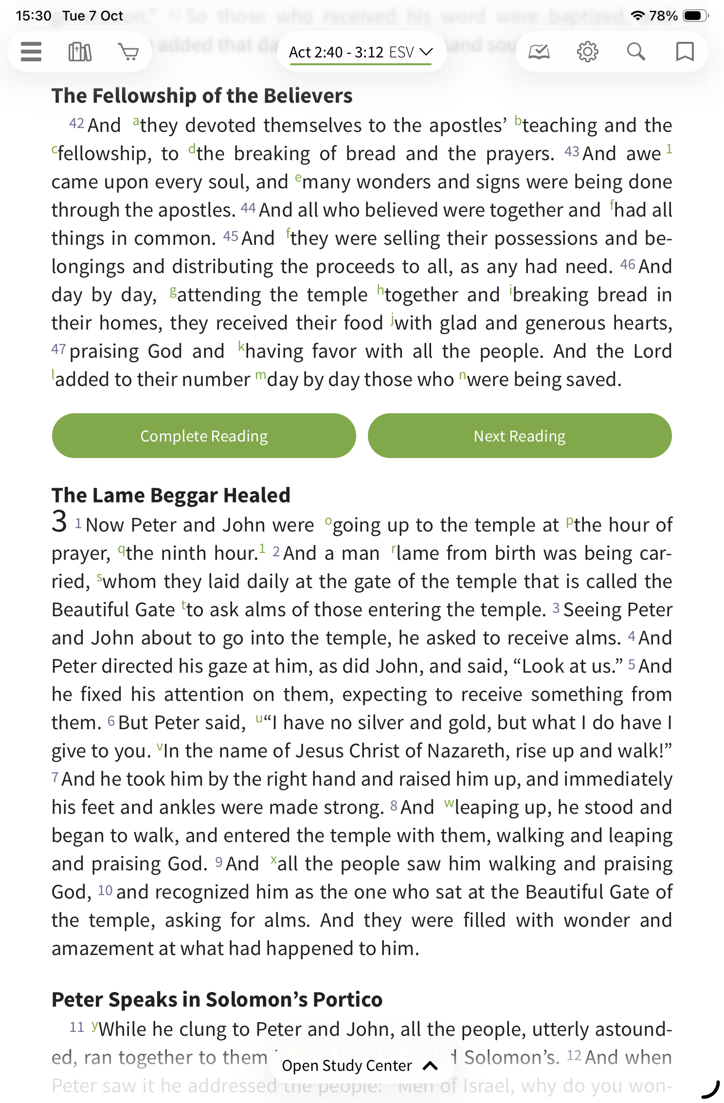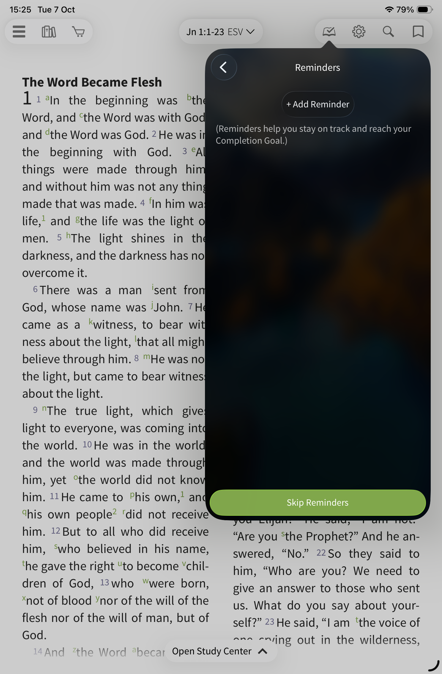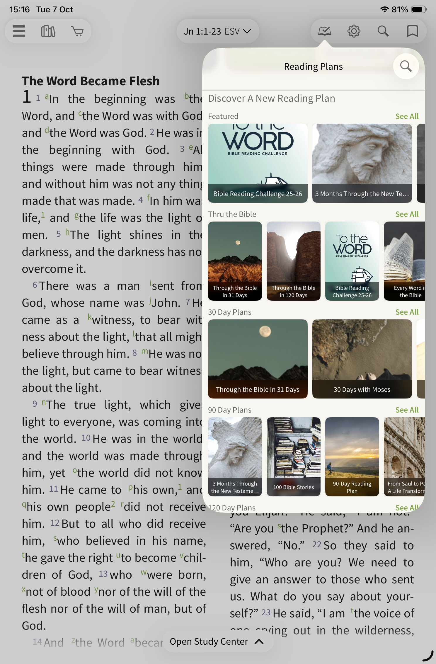To start, select the reading plan icon on the toolbar.