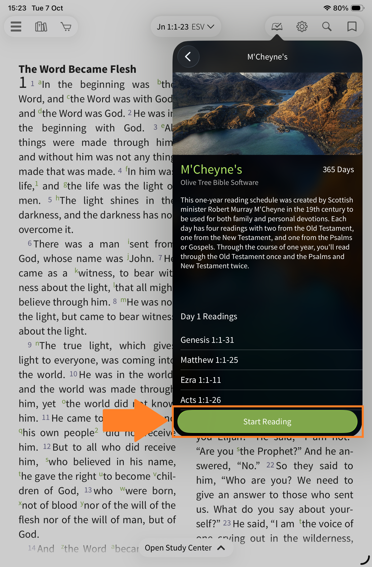 Follow these steps to start a reading plan: