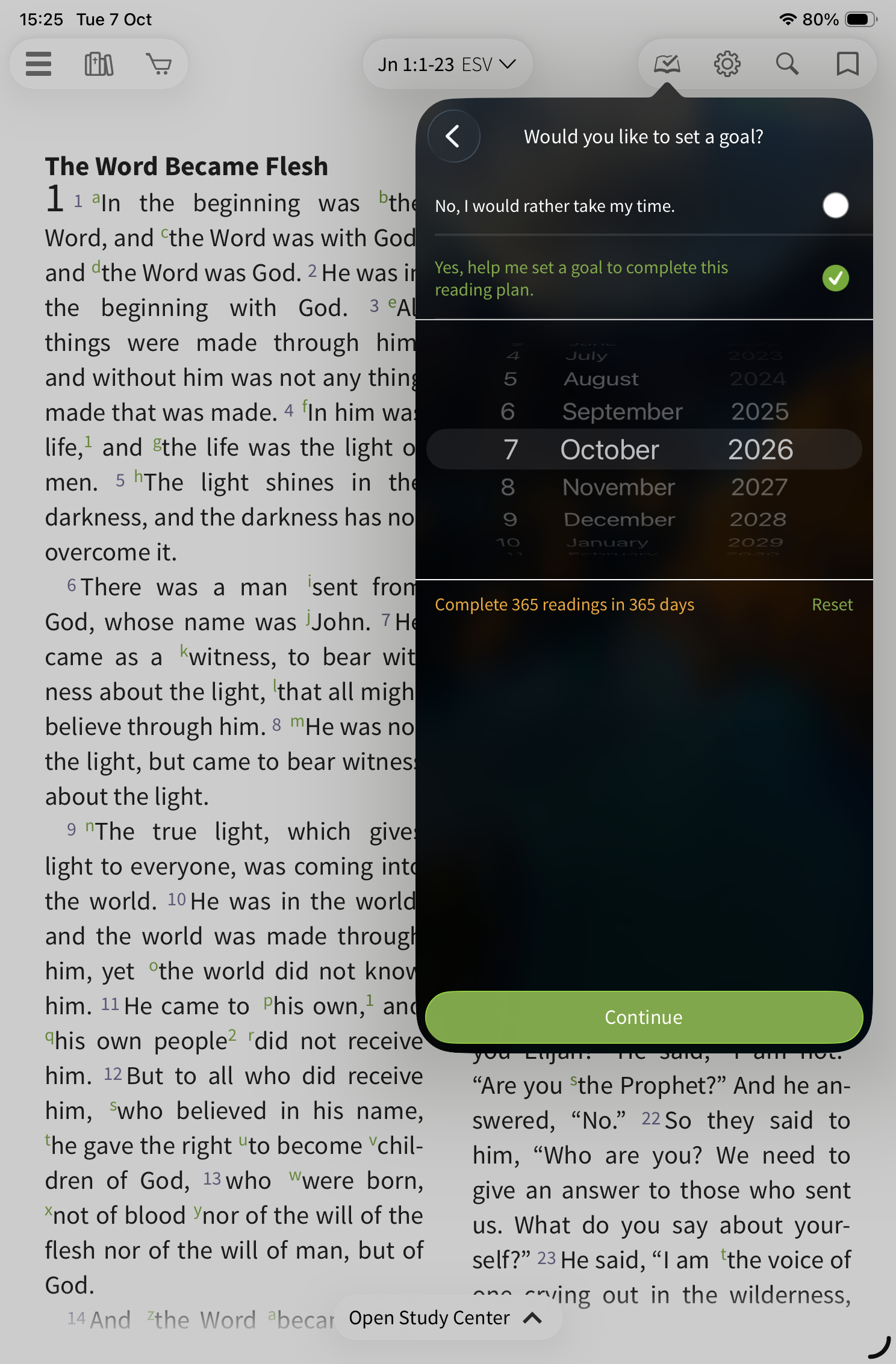 or "Yes, help me set a goal to complete this reading plan." to