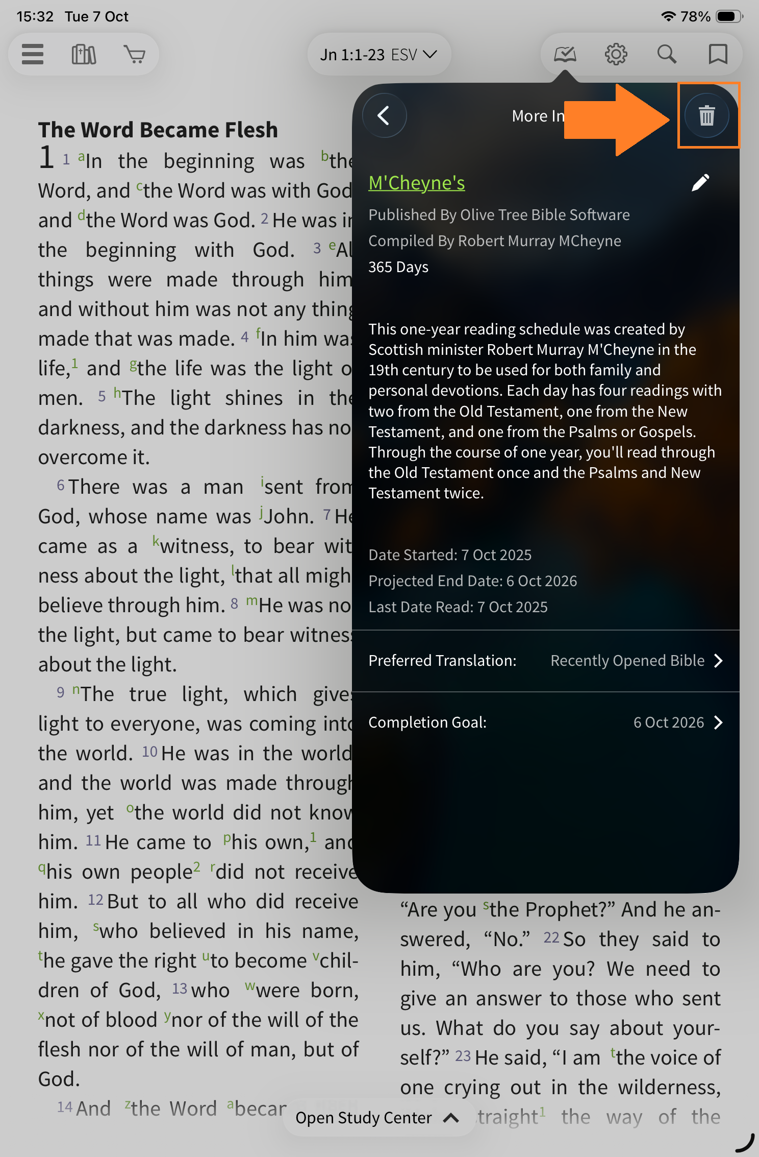 Follow these steps to delete a reading plan from within your app: