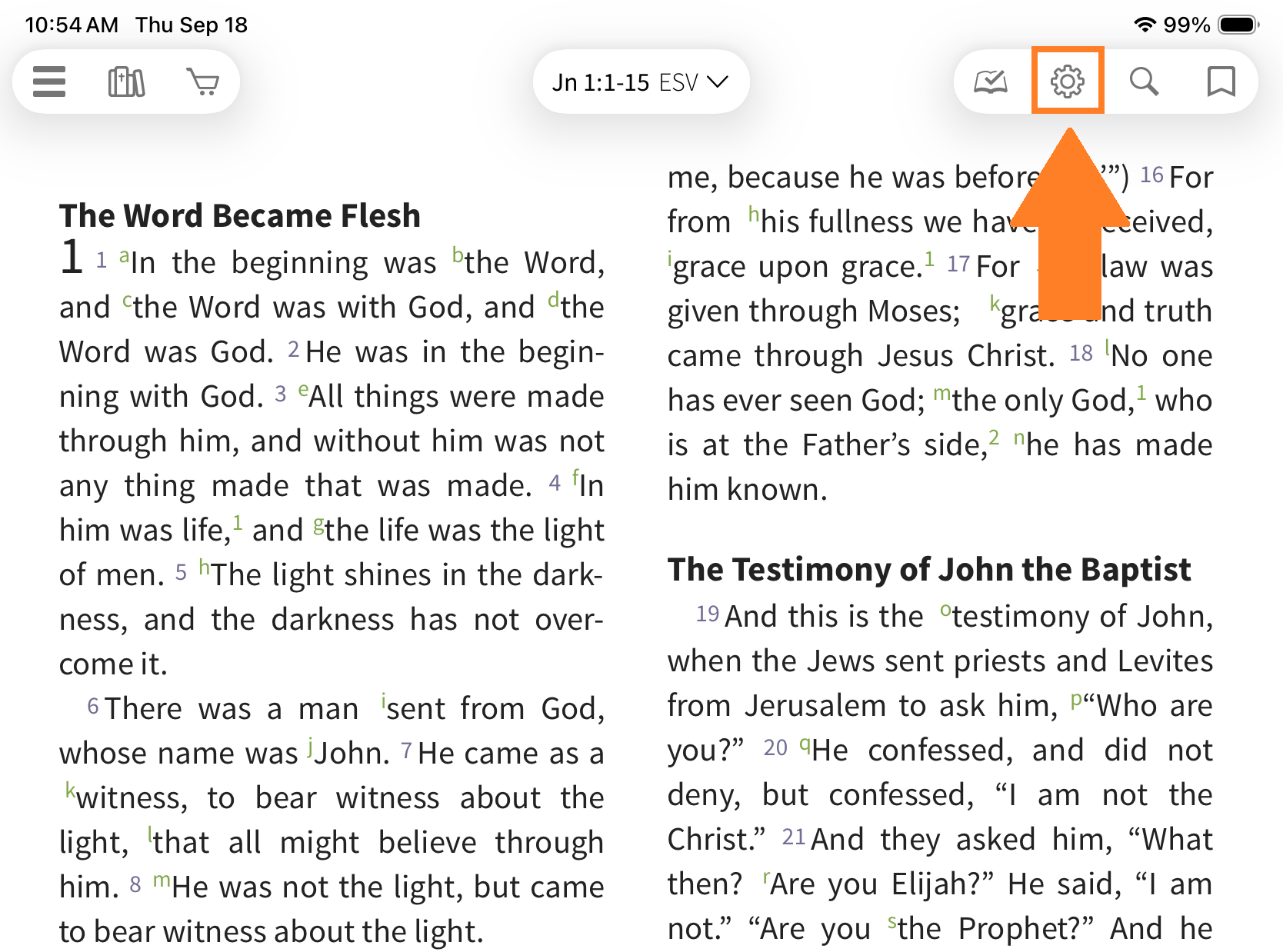 Tap the Settings icon in the toolbar to quickly access the most commonly used display options: