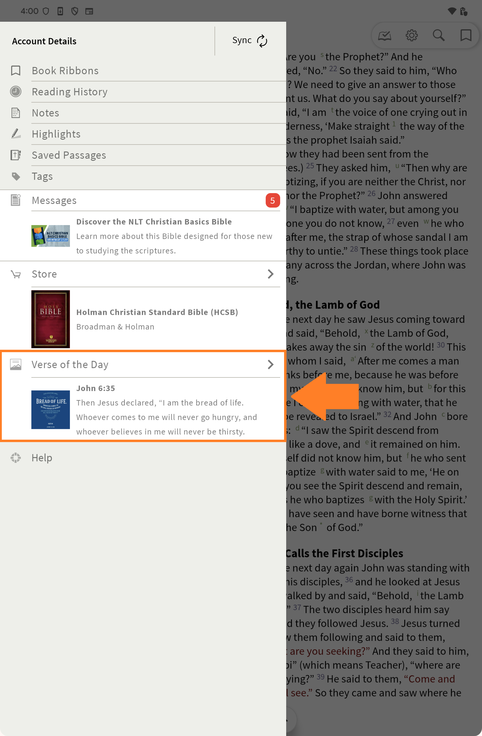 We hope these steps have helped you learn how to view the Verse of the Day in the Olive Tree Bible App on your Android device. If you have any further questions, don't hesitate to contact our Customer Support team.