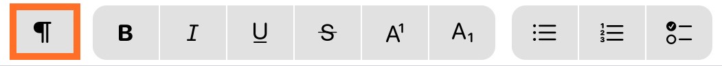 The pilcrow icon will allow you to format text as either a Title, Heading, Subheading, Body, or Blockquote.