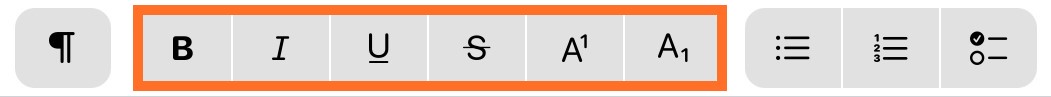 These icons will allow you to format text as bold, italic, underline, strikethrough, superscript, or subscript.