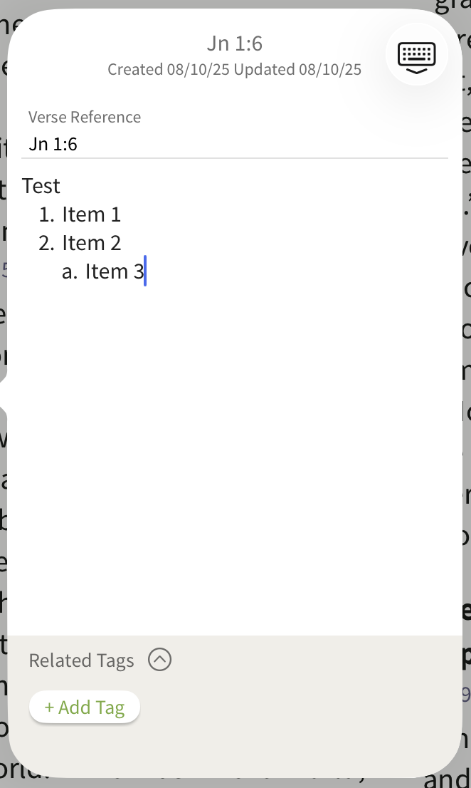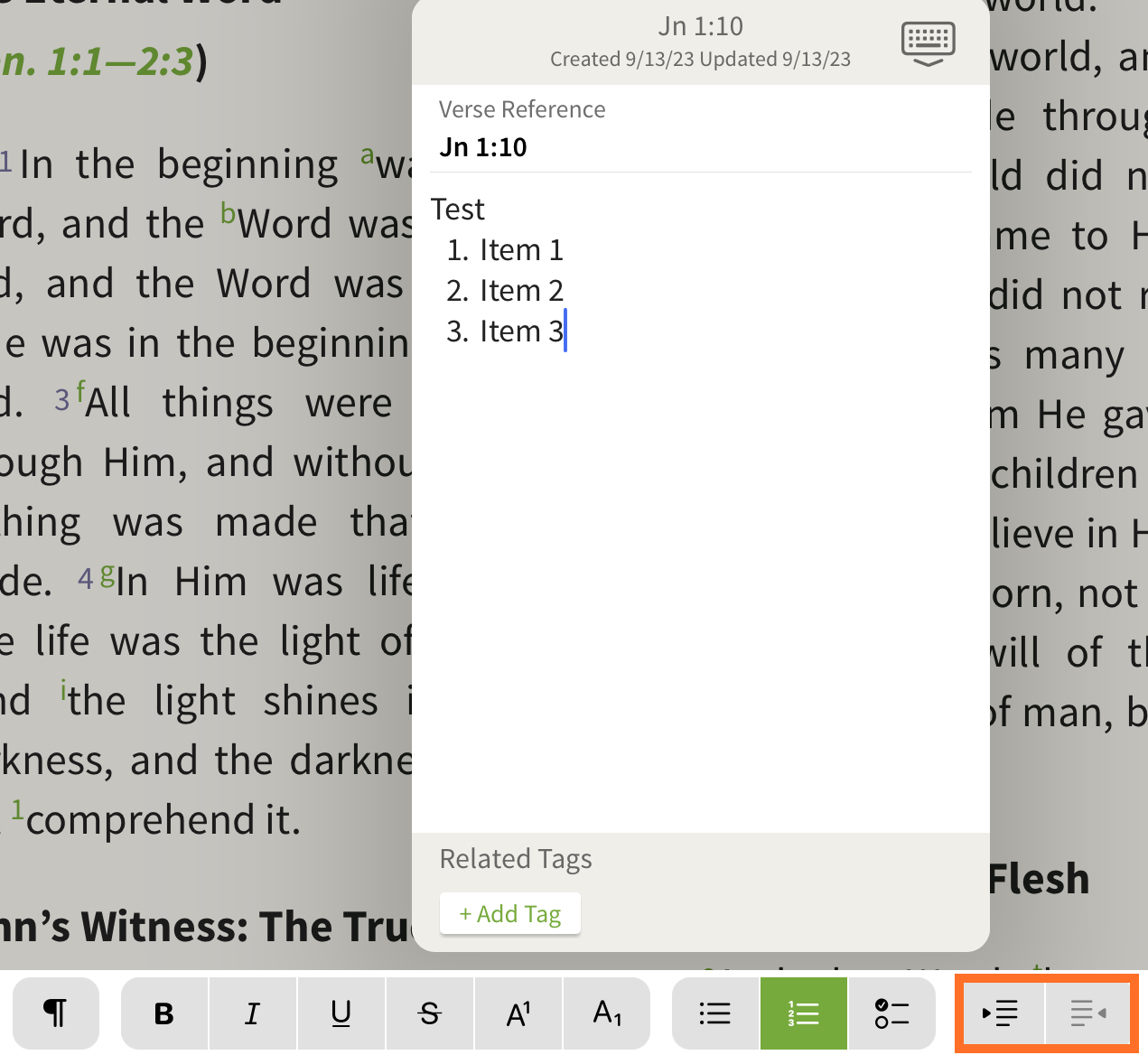 Tapping on the list icons will allow you to choose between a bulleted list, a numbered list, or a checklist.