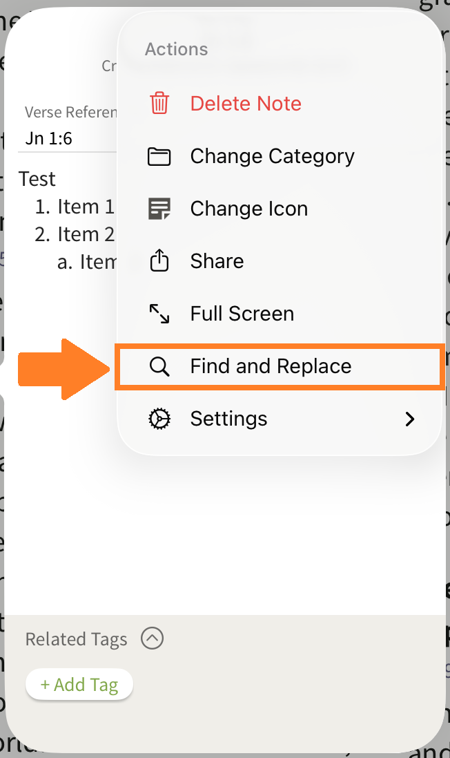 Type the word you wish to find and the word you wish to replace it with. Tap 'Replace'. In this example, we are replacing "Test" with "List":