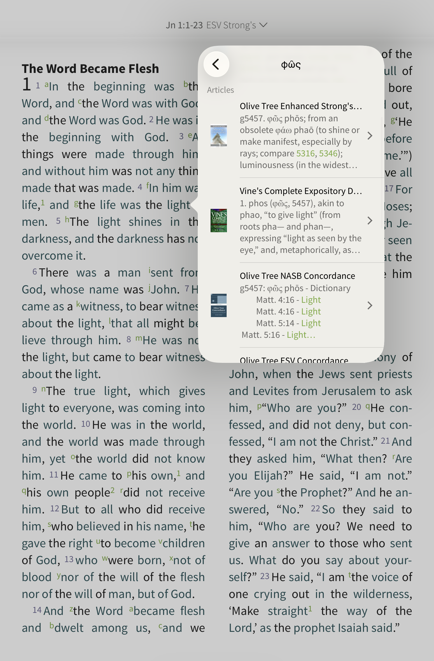 We hope that this introduction to using Strong's Bibles in the Olive Tree Bible App has been helpful for you. You can find all of our Strong's Bibles on our website!