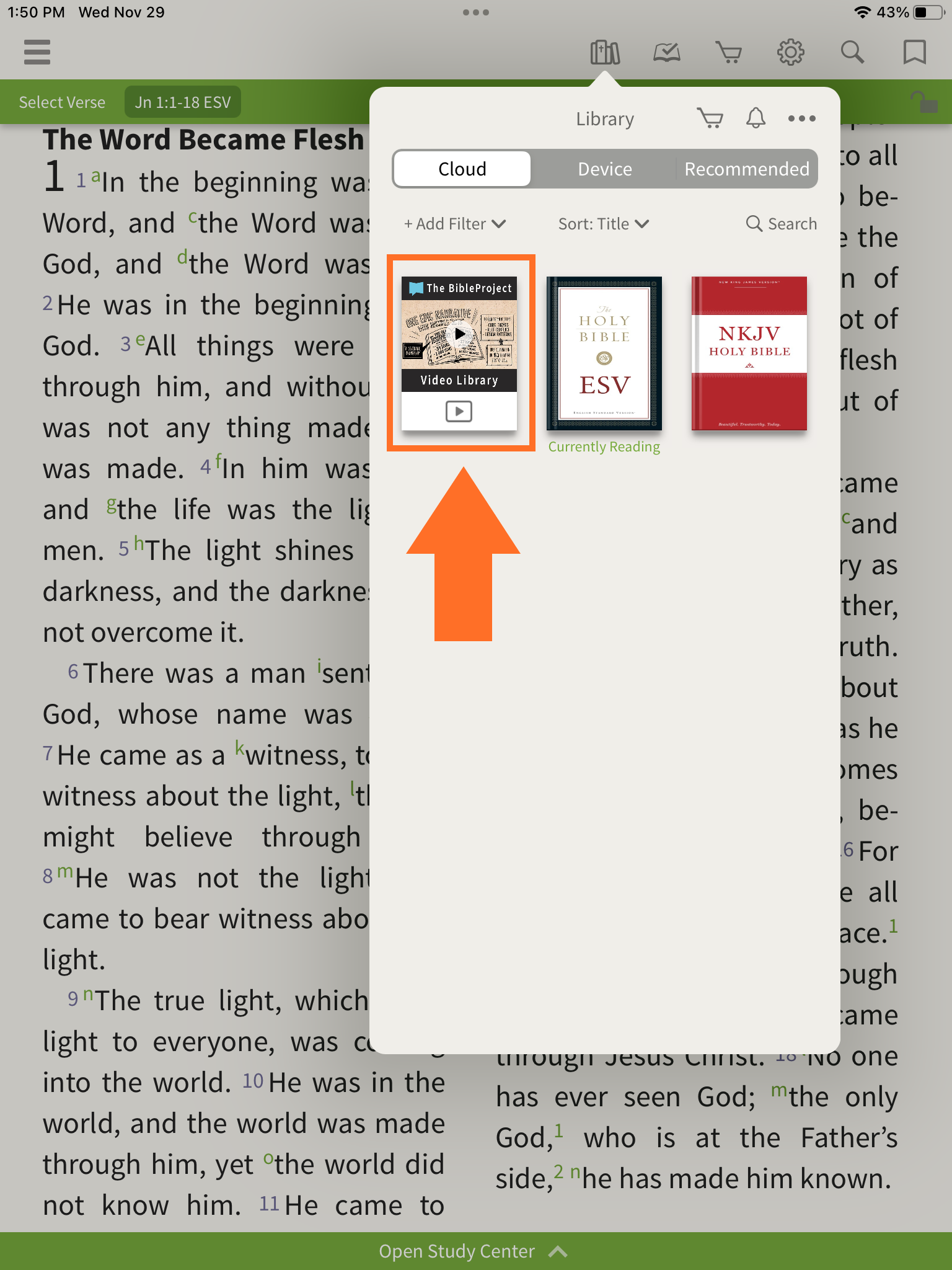 The BibleProject videos can also be accessed through the Library once they've been added to your account following the steps above.