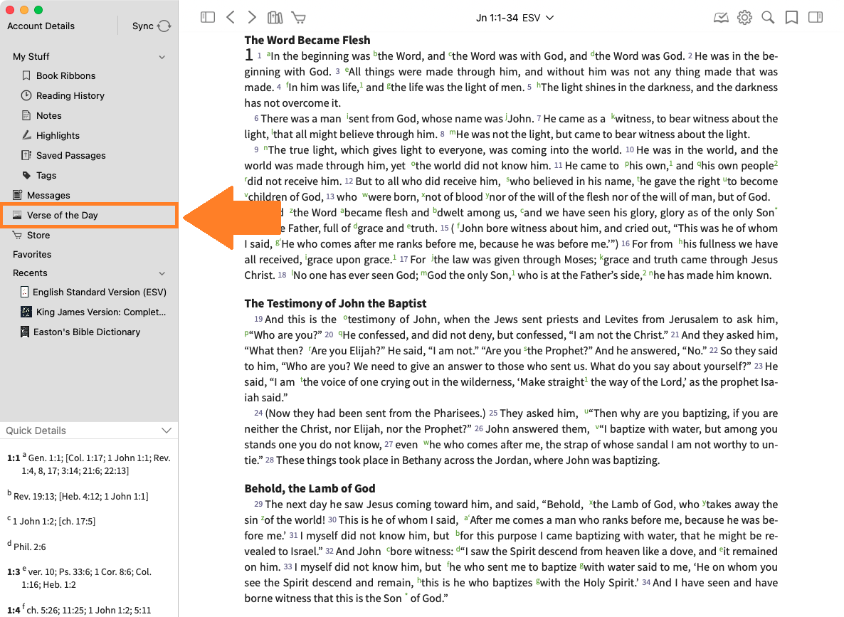 Select 'Verse of the Day'.
