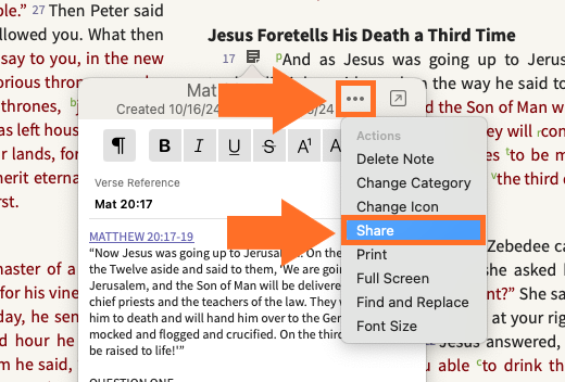 - Word-Based Notes: Created by selecting specific text. These are tied to the exact resource where they were created (e.g., a specific Bible translation or commentary).