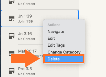 - Secondary click the note (or hold 'control' and click) and then select 'Delete.'