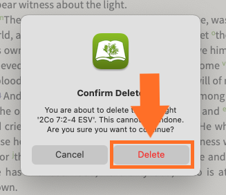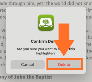 There are two ways to delete a highlight in our app. First, you can delete a highlight from the text: