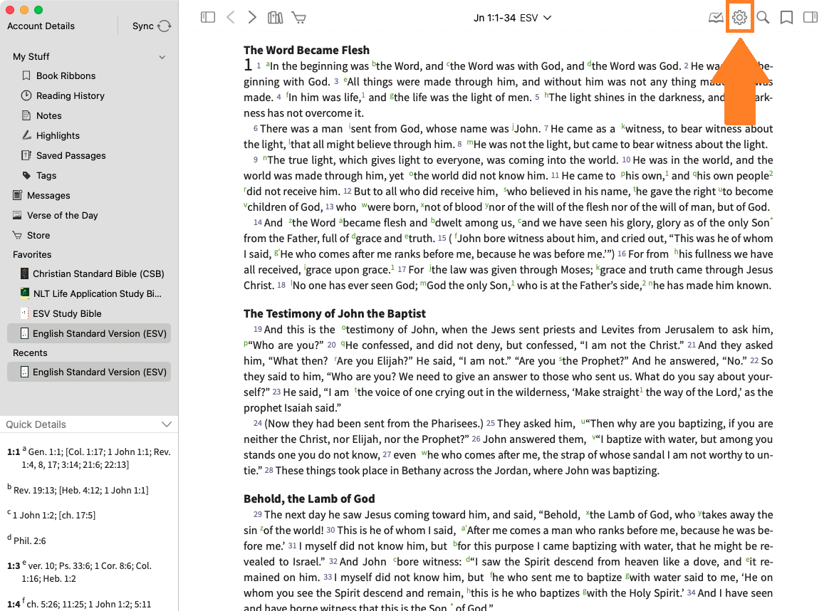 - Customize your sidebar to show/hide Bibles, Favorites, and Recents.