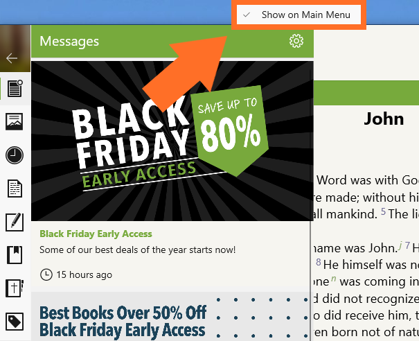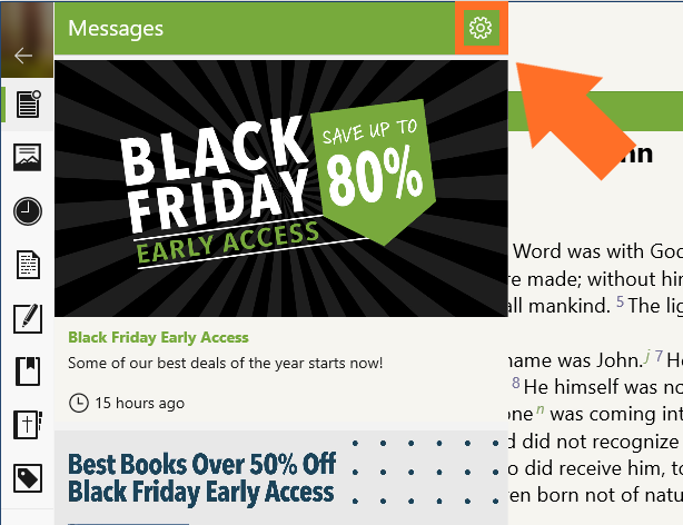 Follow the steps below to change the settings for Messages within the Olive Tree Bible app: