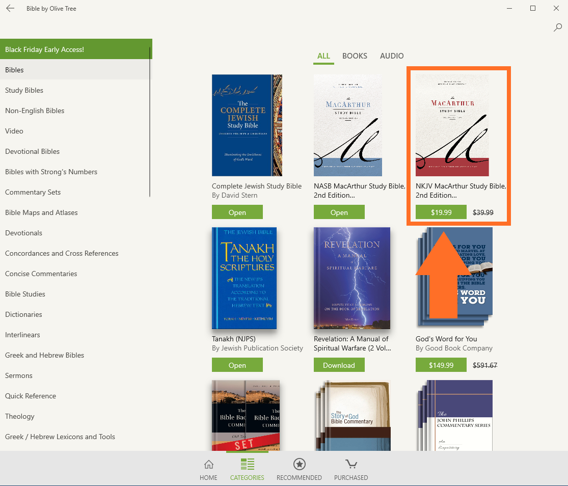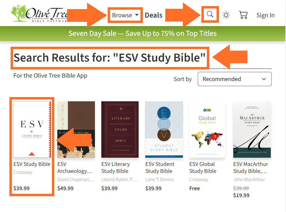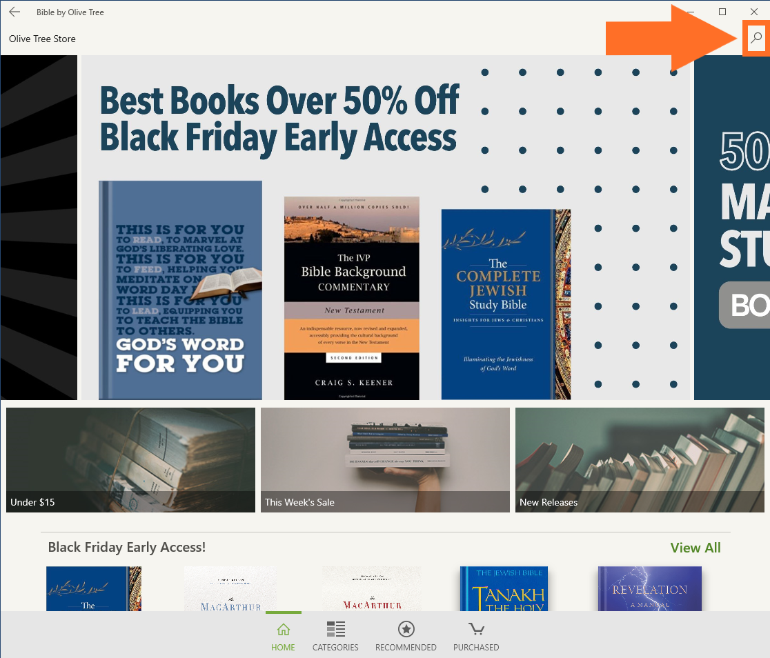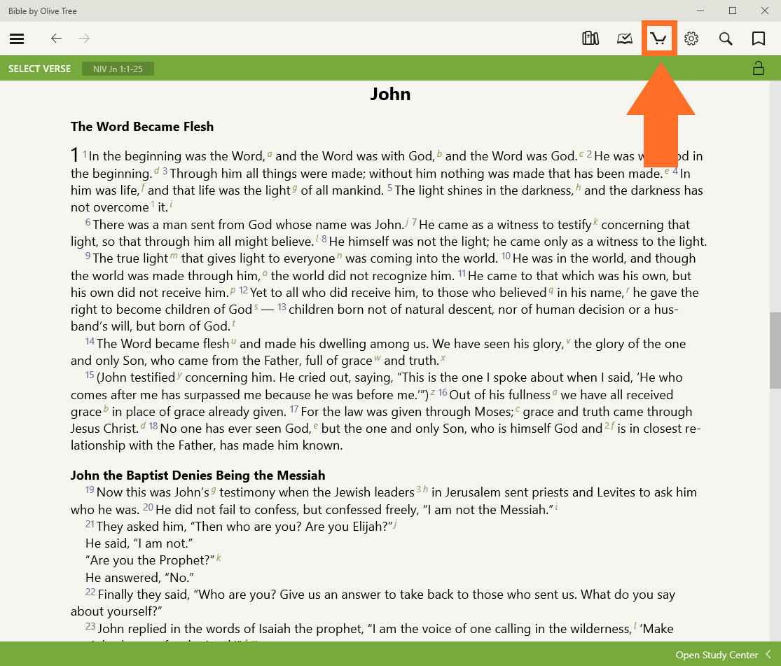 There are two easy ways to buy Bibles and books for the Olive Tree Bible App: