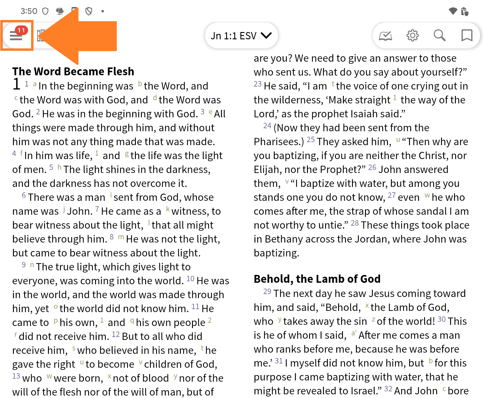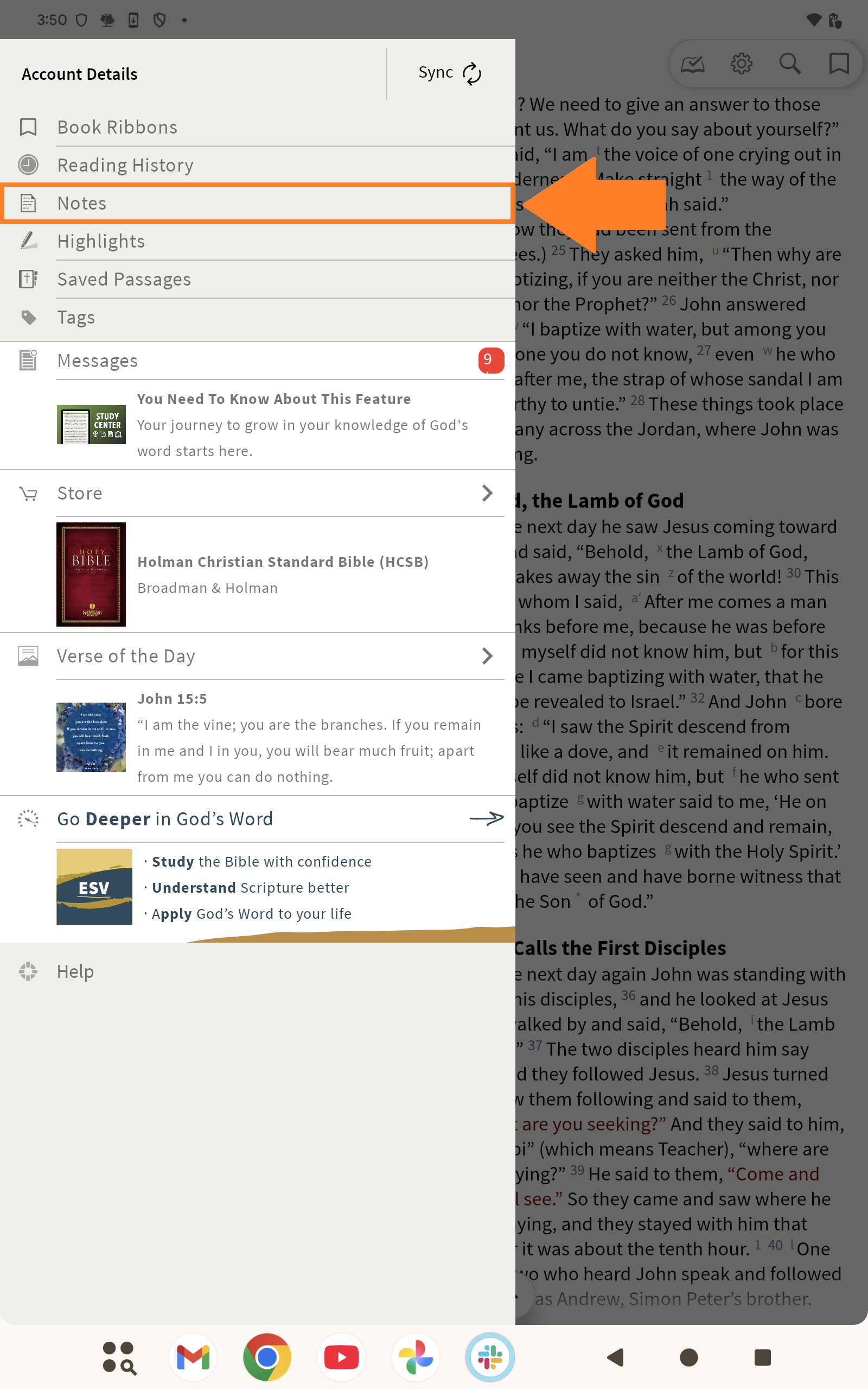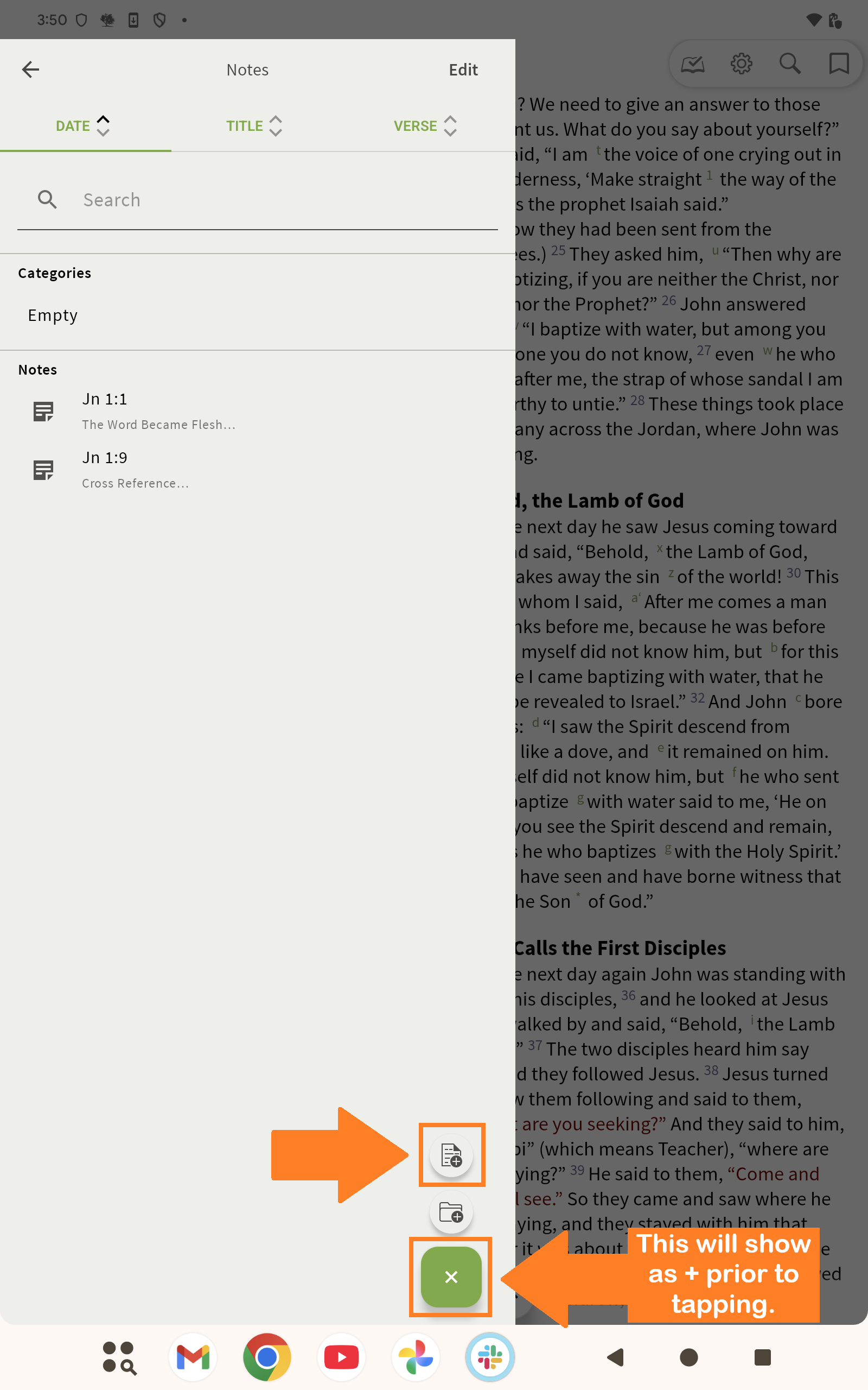 The most common way to create a note is while viewing text. As mentioned above, these notes can be tied either to a verse or to text. Follow these steps to create a note: