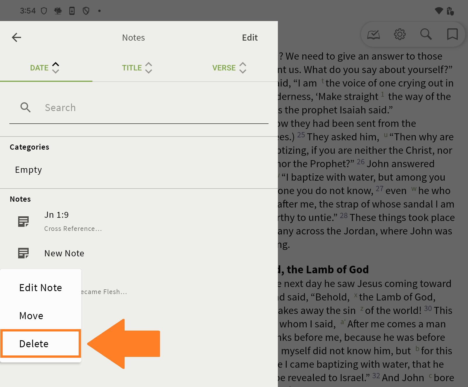 Notes allow you to capture thoughts, reflections, sermon insights, or study questions directly within the Olive Tree Bible App. You can tie notes to specific verses or passages, or create stand-alone notes not linked to any text. Whether you're journaling through Scripture or organizing your studies, notes are a flexible and powerful tool for deepening your Bible engagement.