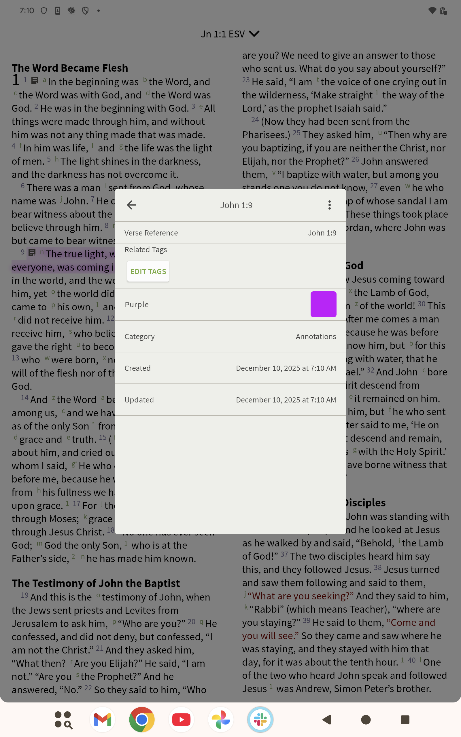 - Choose the label, tags, and category you want to add to the highlight. You can also tap on the up/down arrows to add more verses to your highlight if you added the highlight by tapping on a verse number.
