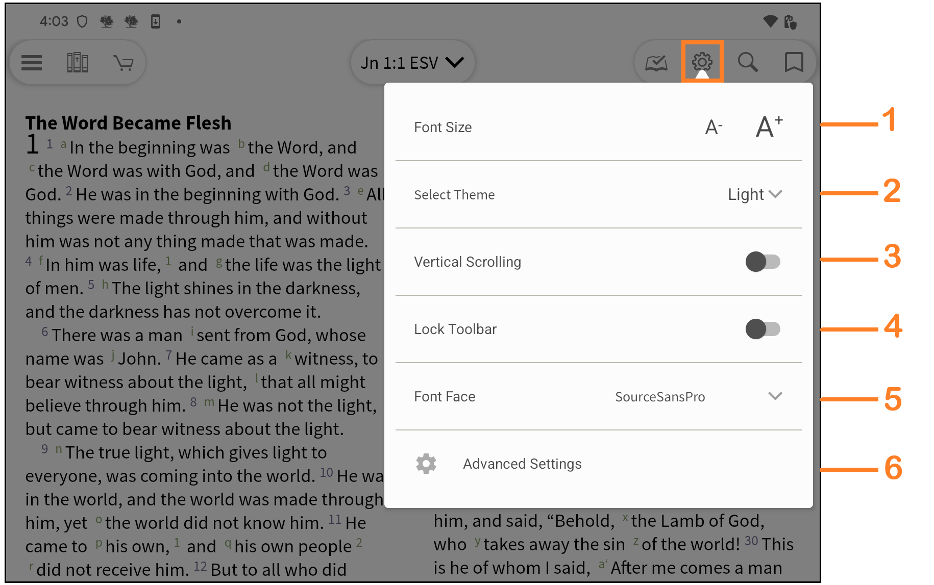 - Hyperlink Settings - Choose your default Bible for hyperlinks and how to open hyperlinks.