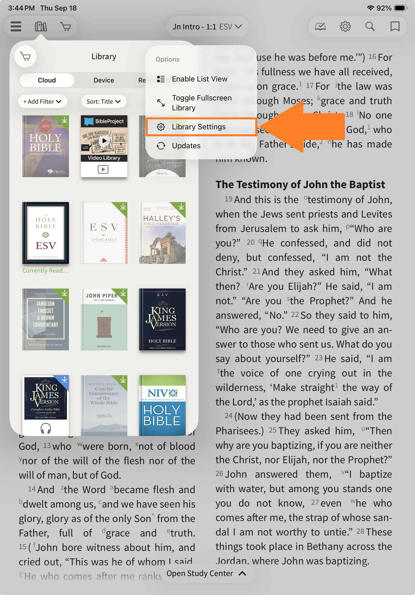 Open the Library by tapping the Library icon from the toolbar.