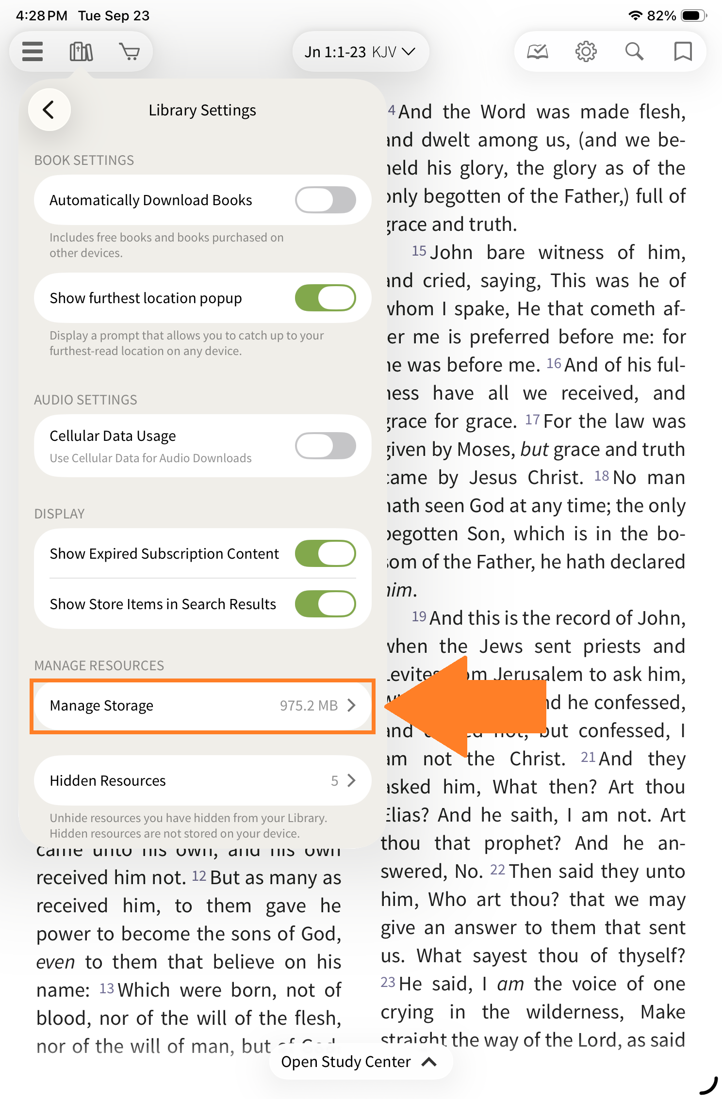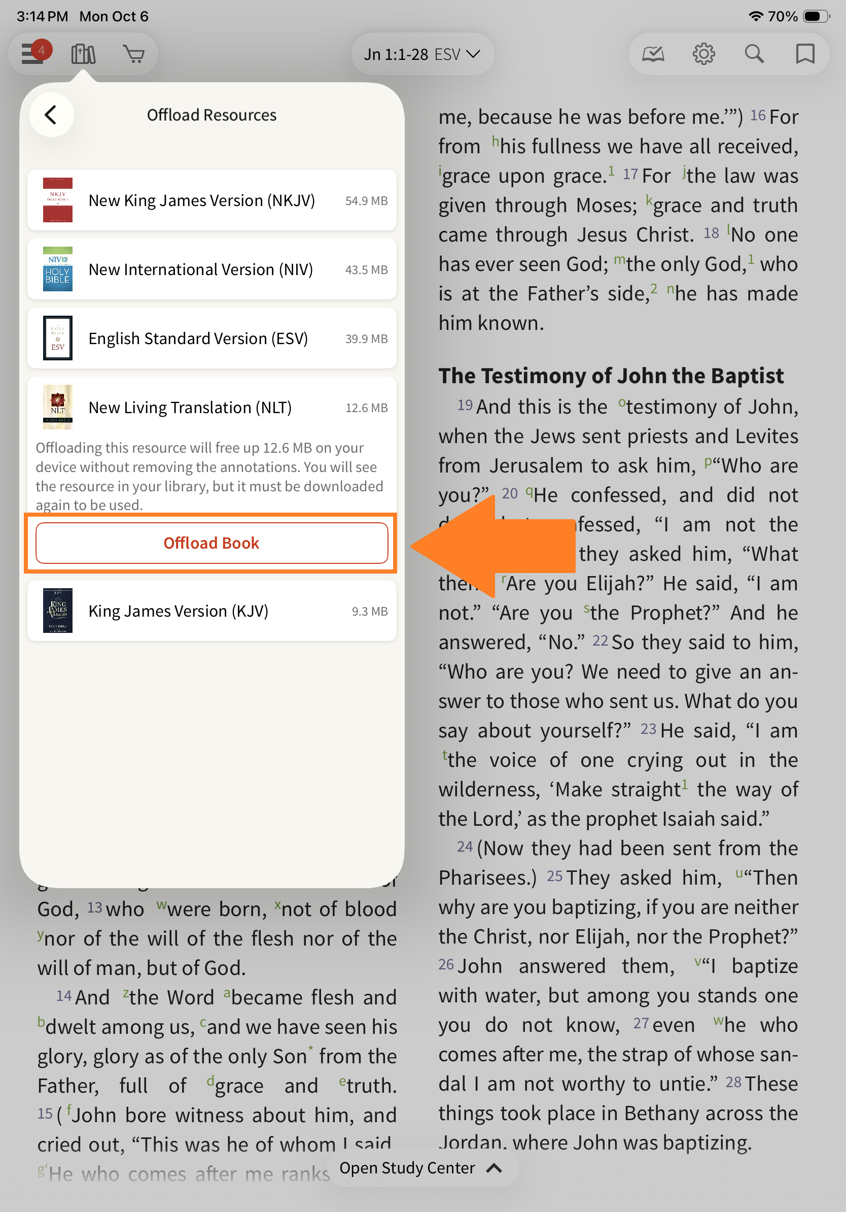 The Olive Tree Bible App allows you to manage storage by offloading resources you’re not currently using. This helps free up space on your device while keeping your content accessible when needed.
