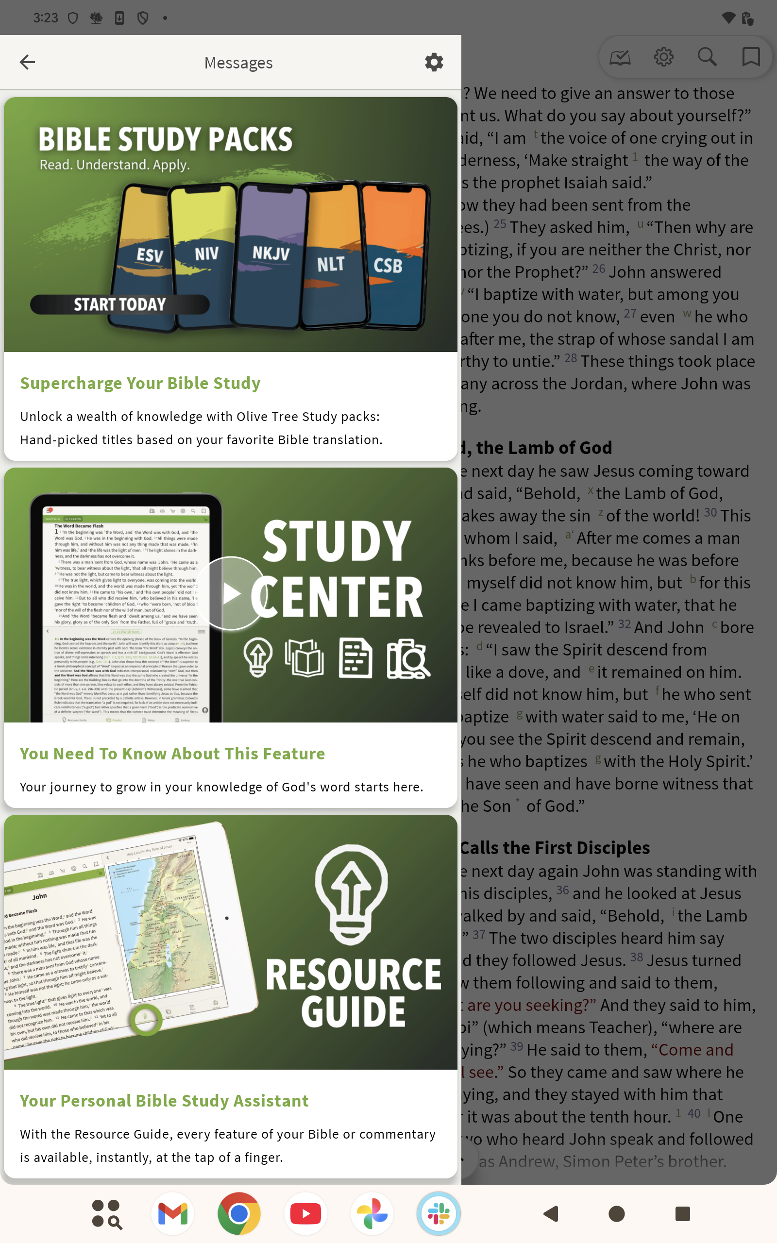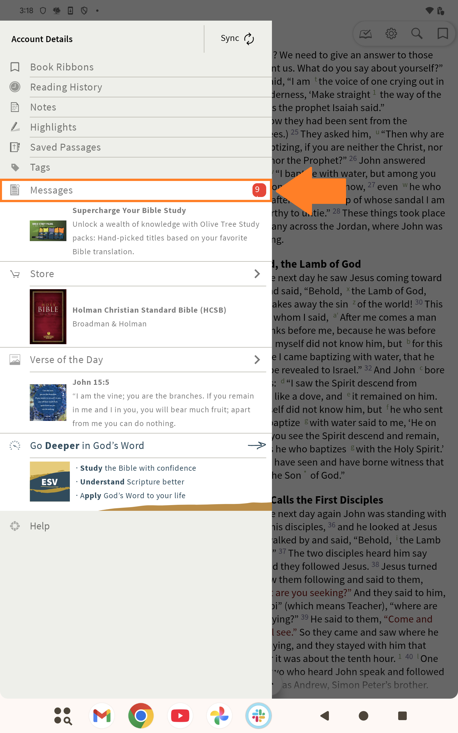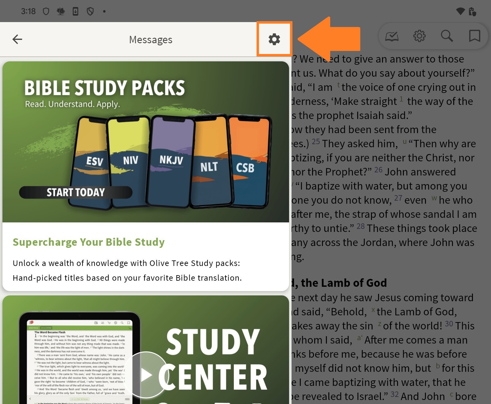 Follow the steps below to change the settings for Messages within the Olive Tree Bible app: