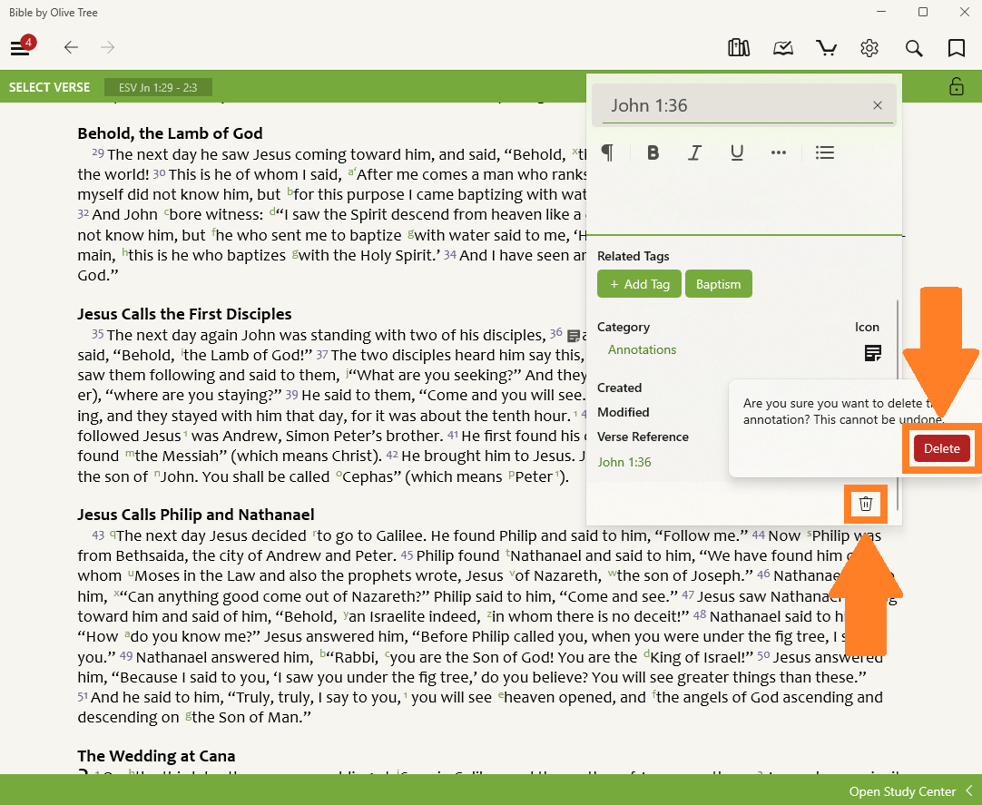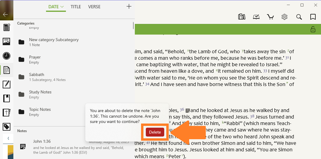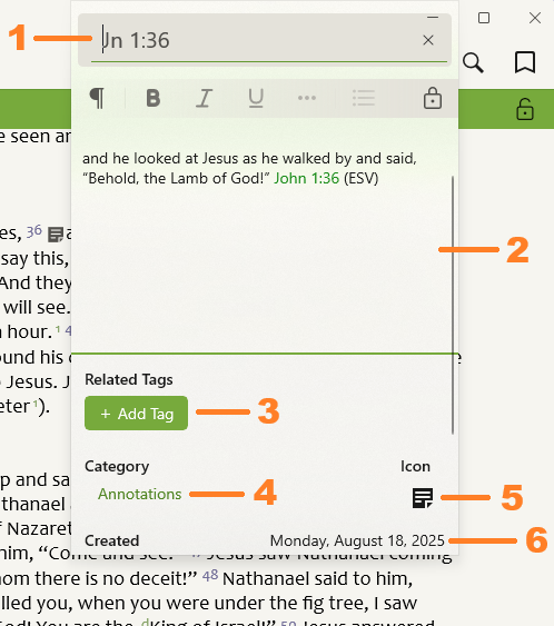- Word-Based Notes: Created by selecting specific text. These are tied to the exact resource where they were created (e.g., a specific Bible translation or commentary).