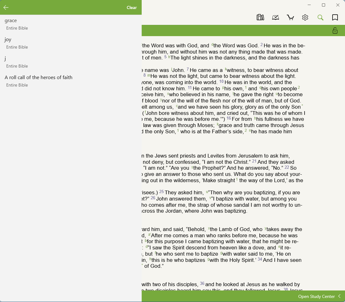 The Search feature in the Olive Tree Bible App helps you quickly find Bible verses, phrases, or words in any resource you’ve downloaded to your Library. With our latest update, you can now find passages related to the ideas or questions you’re exploring in Scripture too.