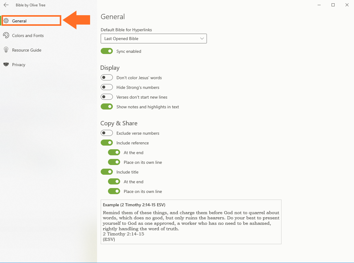- Default Bible for Hyperlinks: Choose your default Bible for hyperlinks.