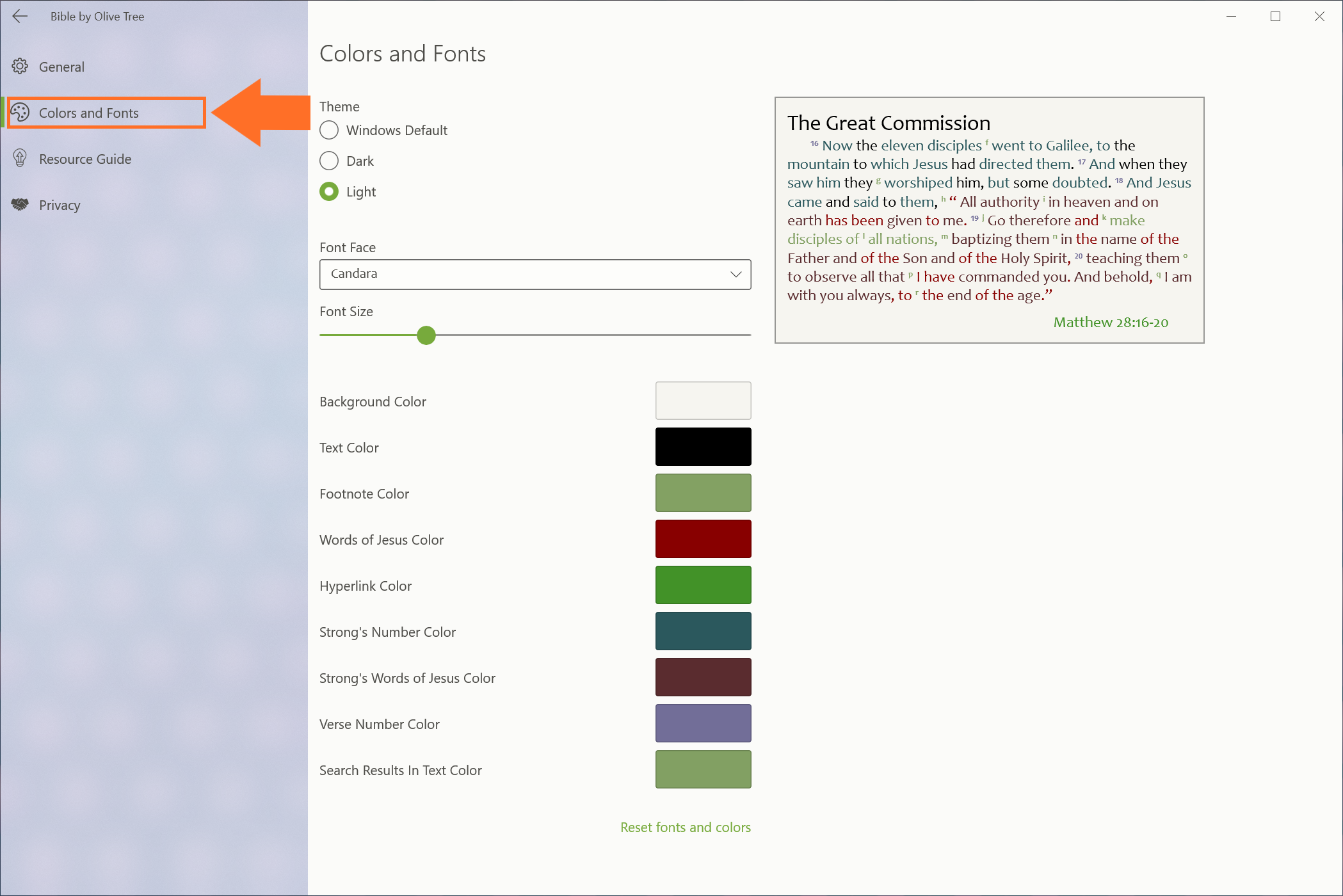 - Reset fonts and colors