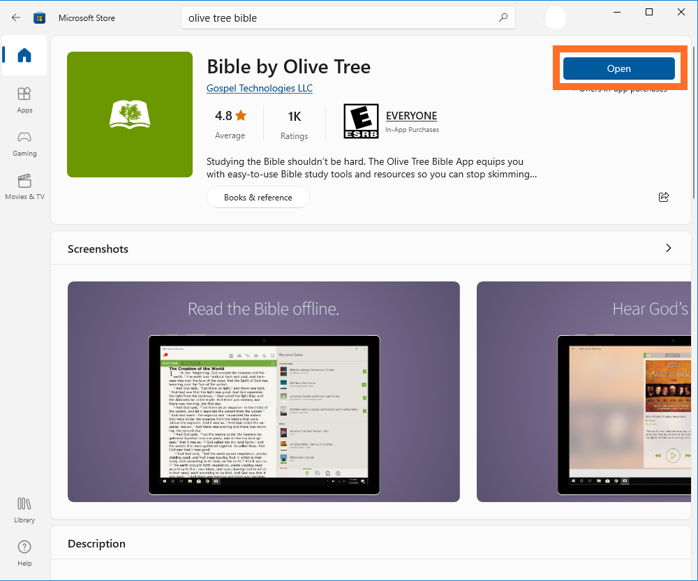 In order to use our resources, you will need to download the Olive Tree Bible app to your Windows 10 or later device. In this Help article, we will walk you through the steps to download the app through the Microsoft Store.