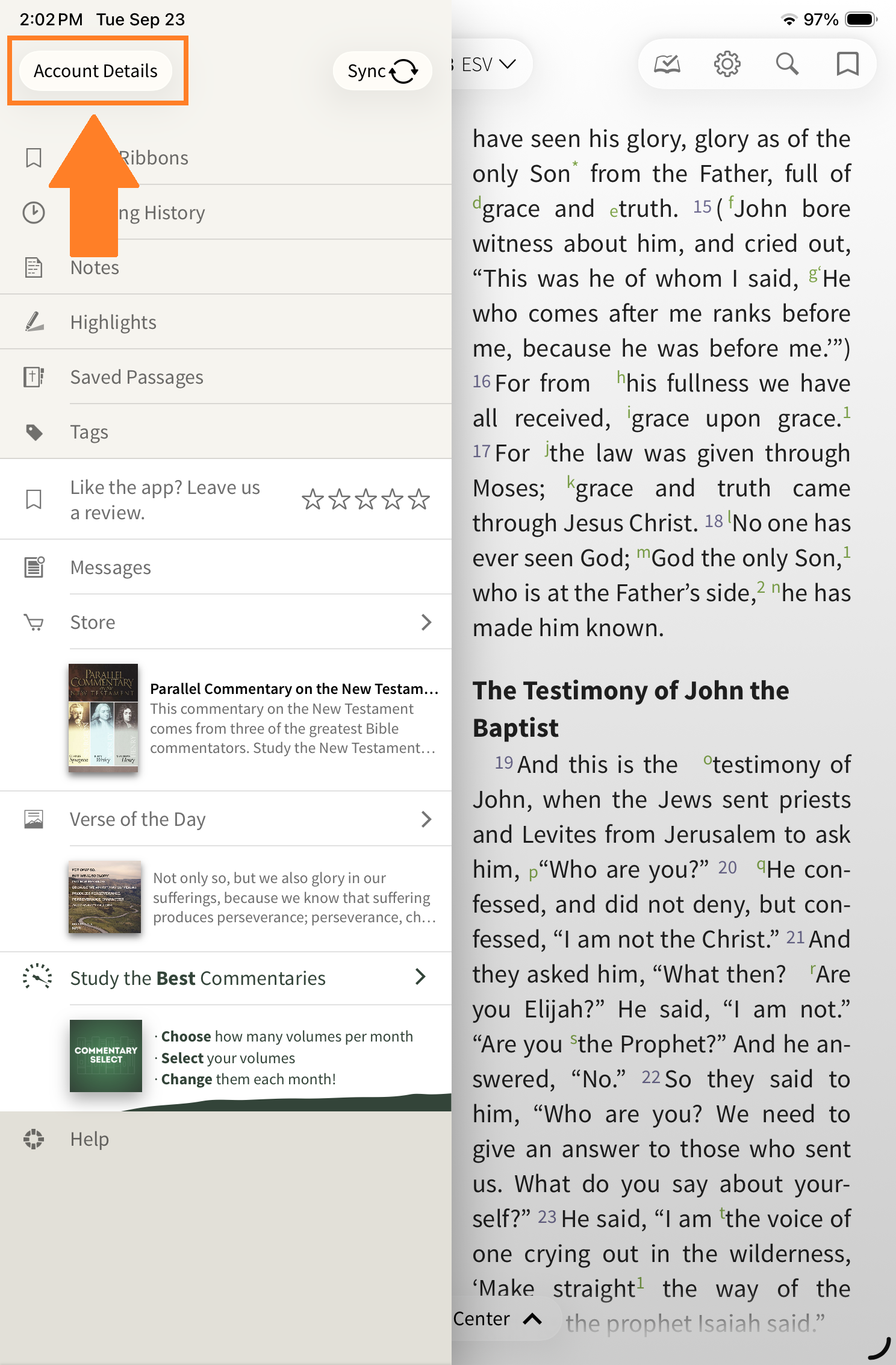- Tap ‘Account Details’ in the upper left corner of the Menu.
