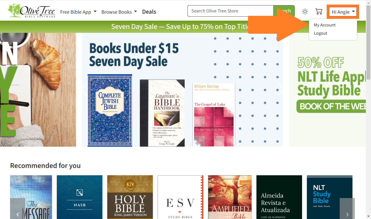 - Log in at: https://www.olivetree.com/store/secure_login.php