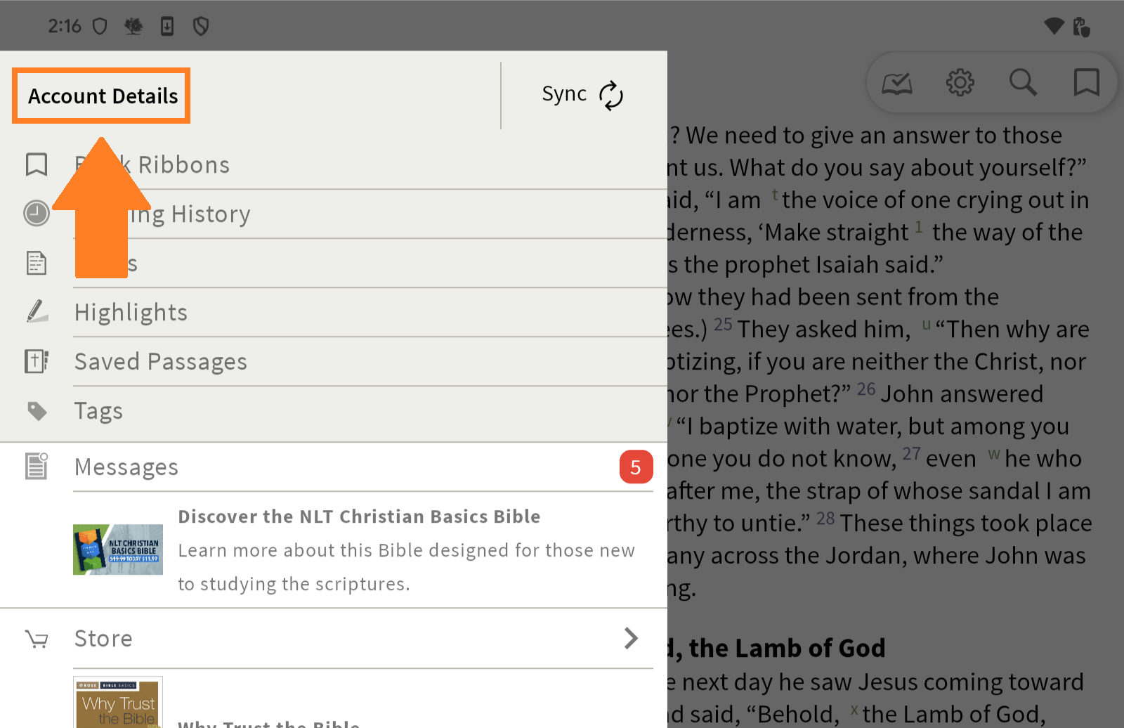 - Tap ‘Account Details’ in the upper left corner of the Menu.