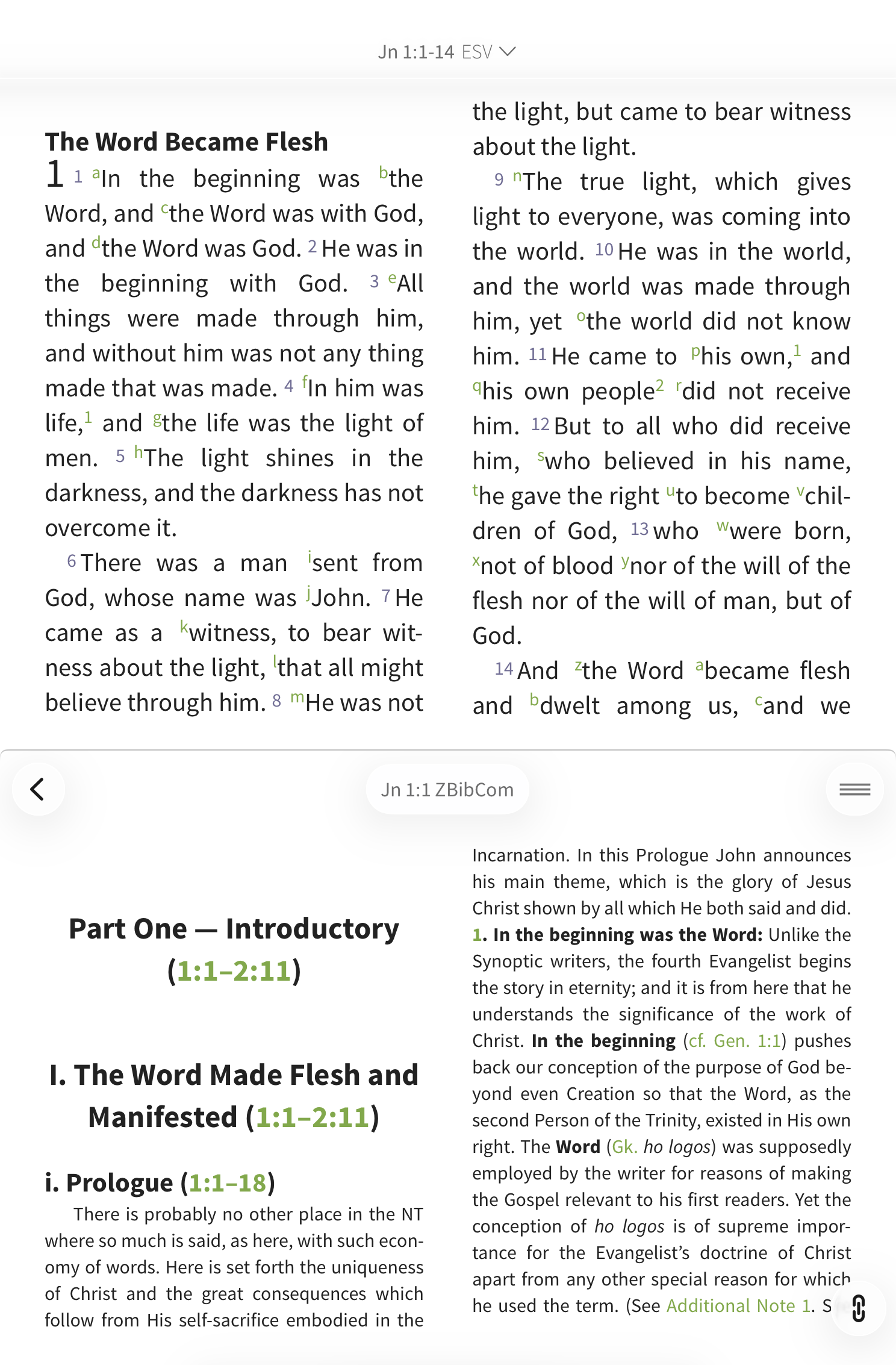 The Olive Tree Bible App also keeps up with the Scripture passage you’re reading in the main window with sync scrolling. This means that as you move along in the Bible text, the commentary syncs to where you are in your study.