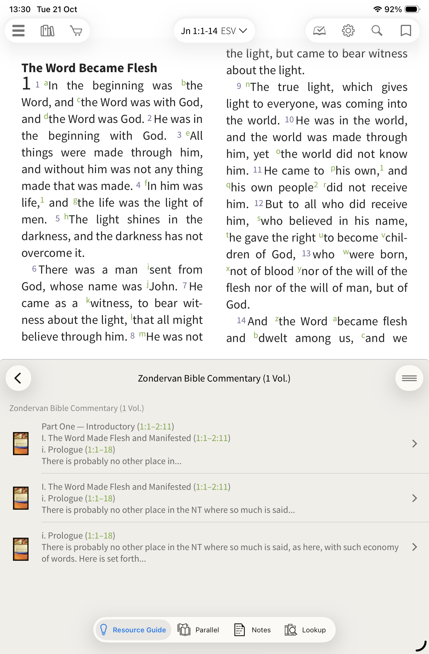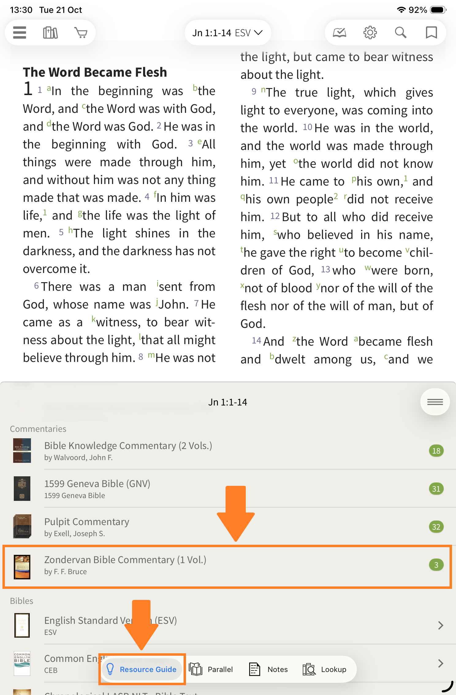If you haven't downloaded your commentary yet, you will find the download steps for your device(s) in this Help article. In these examples, we are using an iPad, though the functionality will be similar in all of our app variations.