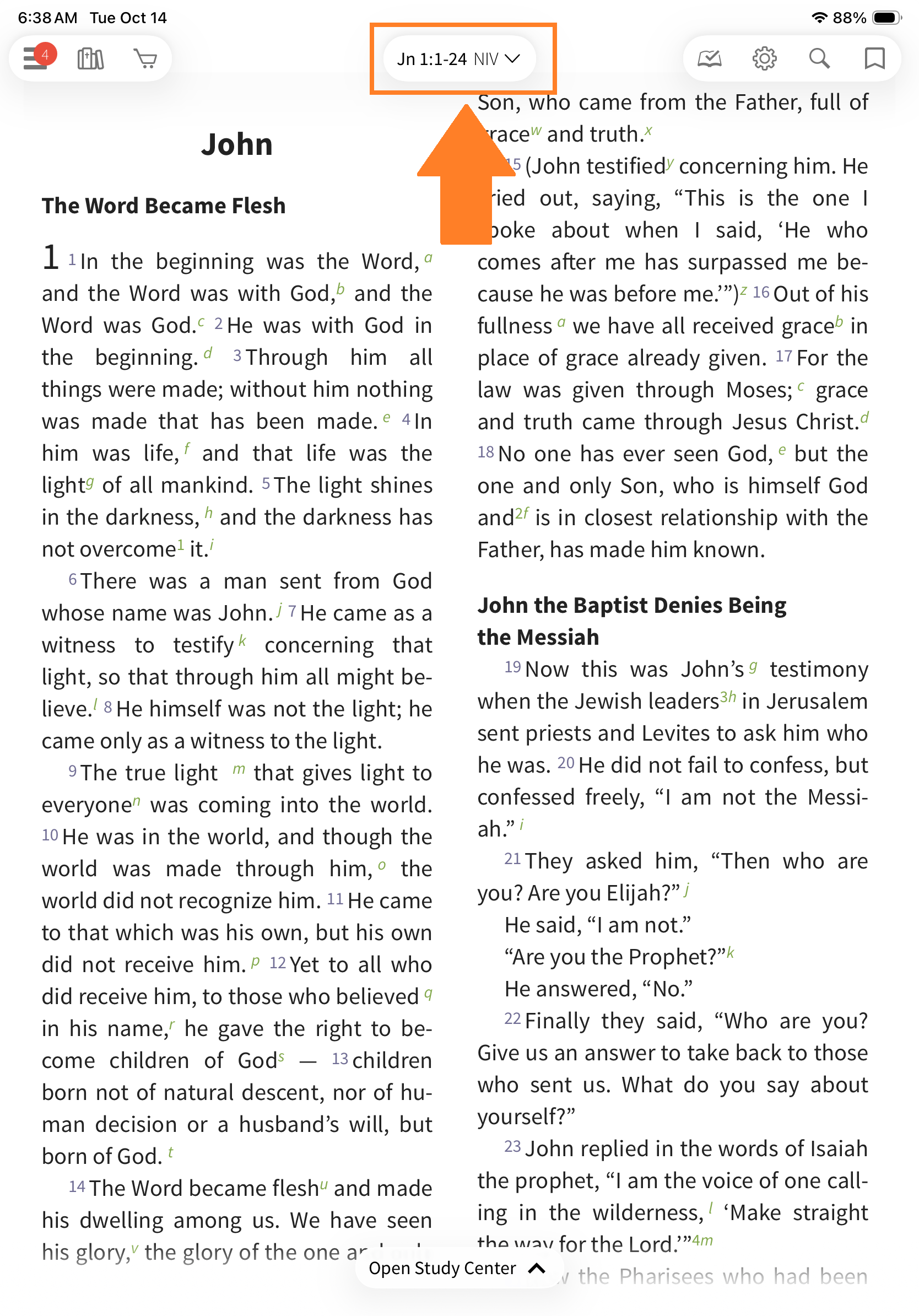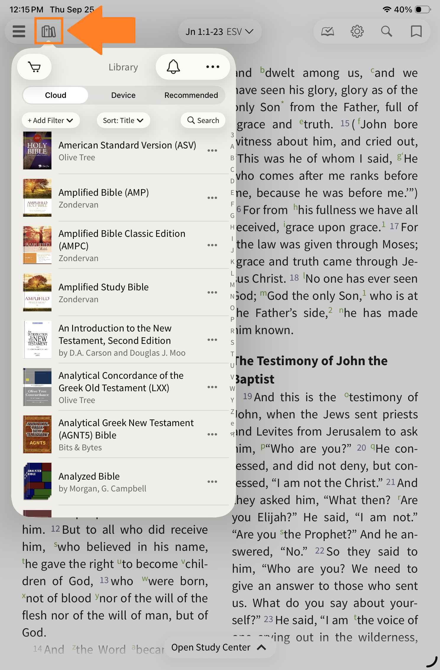 In this article, we will go over how to access and navigate within Bibles. In these examples, we are using an iPad, though the functionality will be similar in all of our app variations.