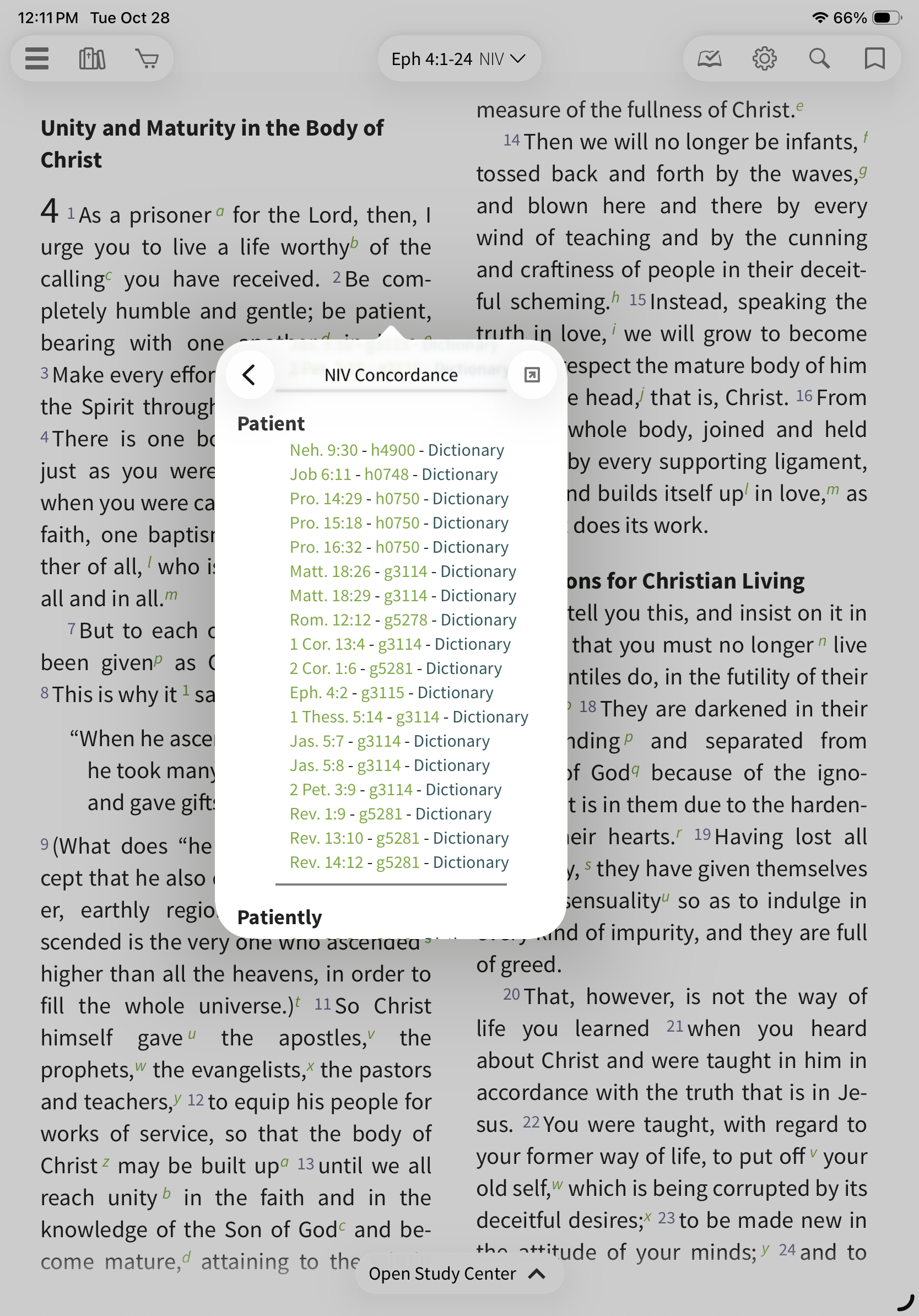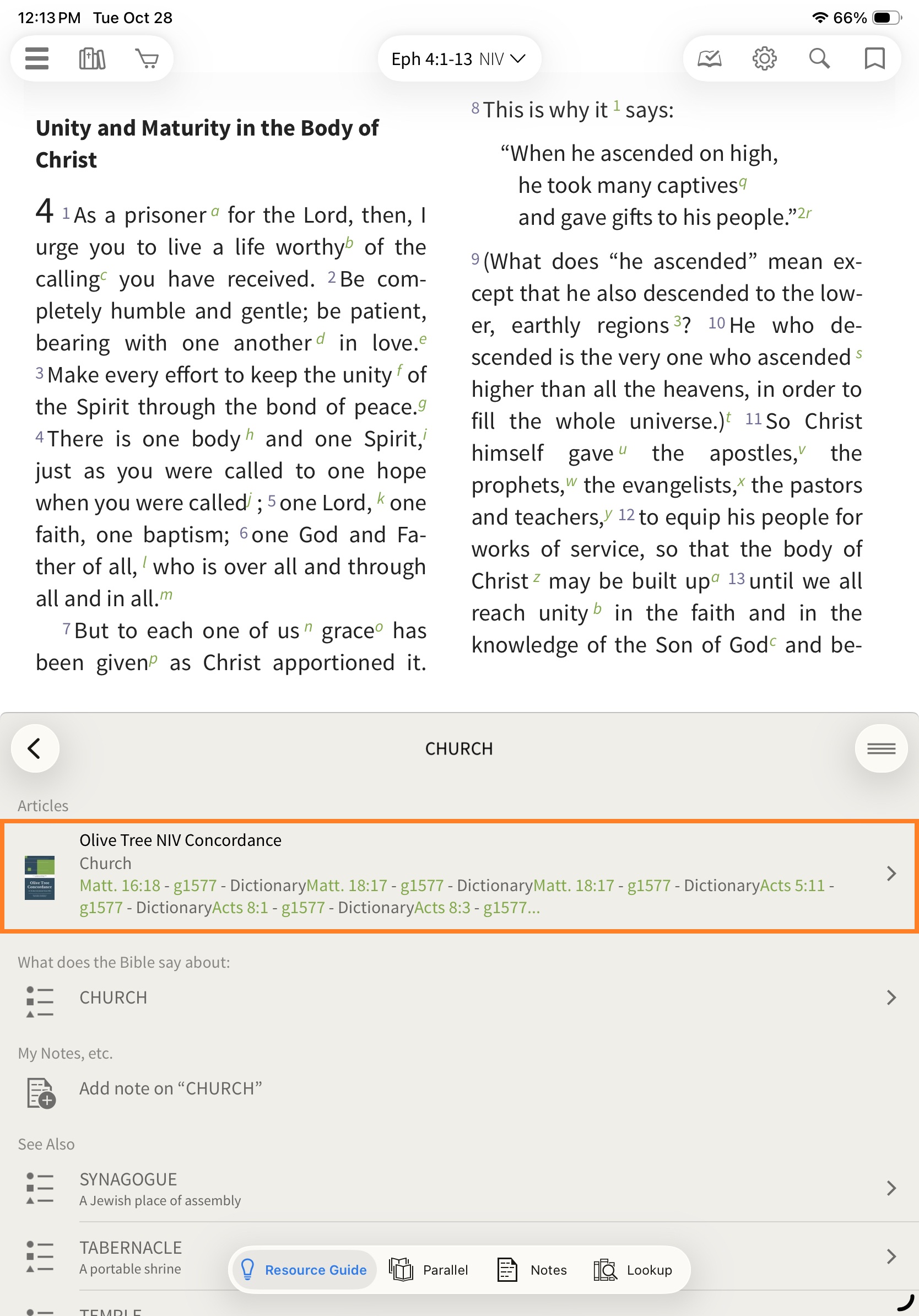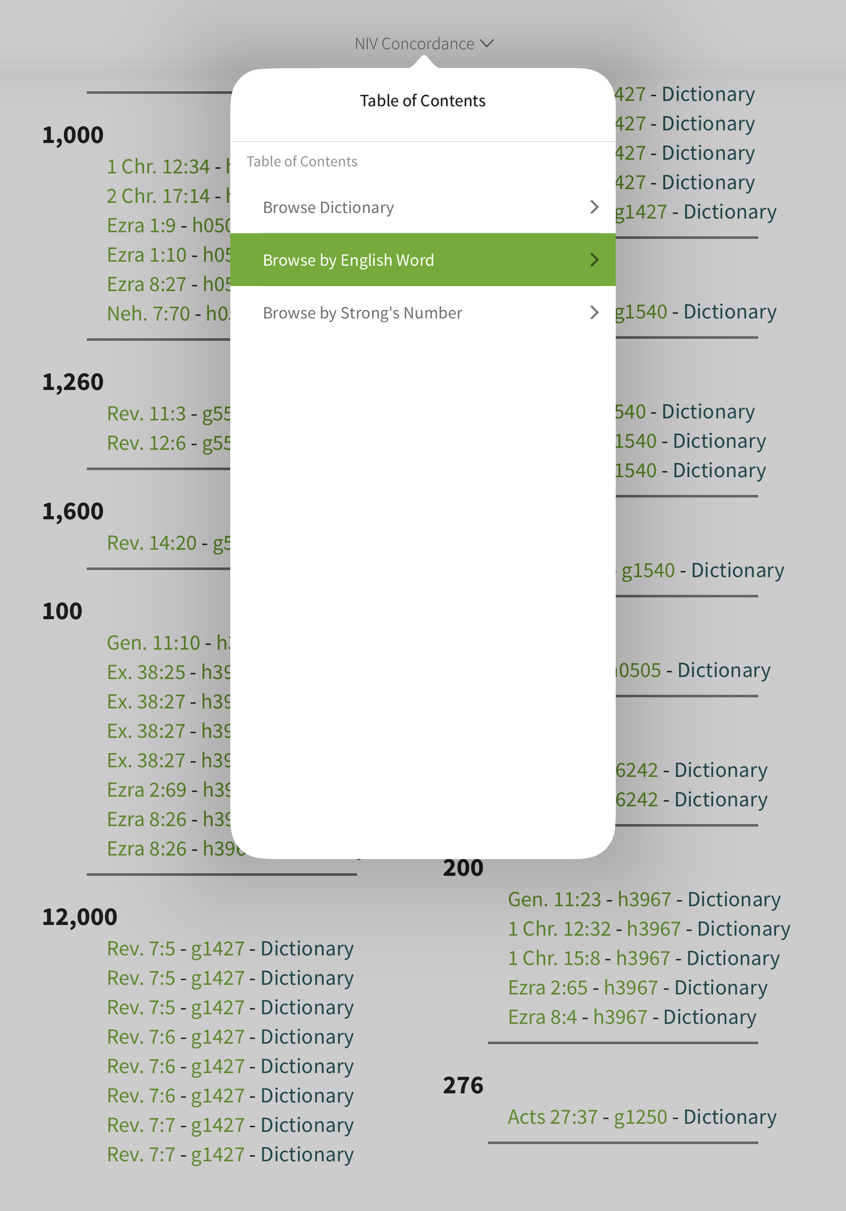 In this Help article, we will help you learn how to use concordances in your Bible study. In these examples, we are using an iPad, though the functionality will be similar in the app on all platforms.