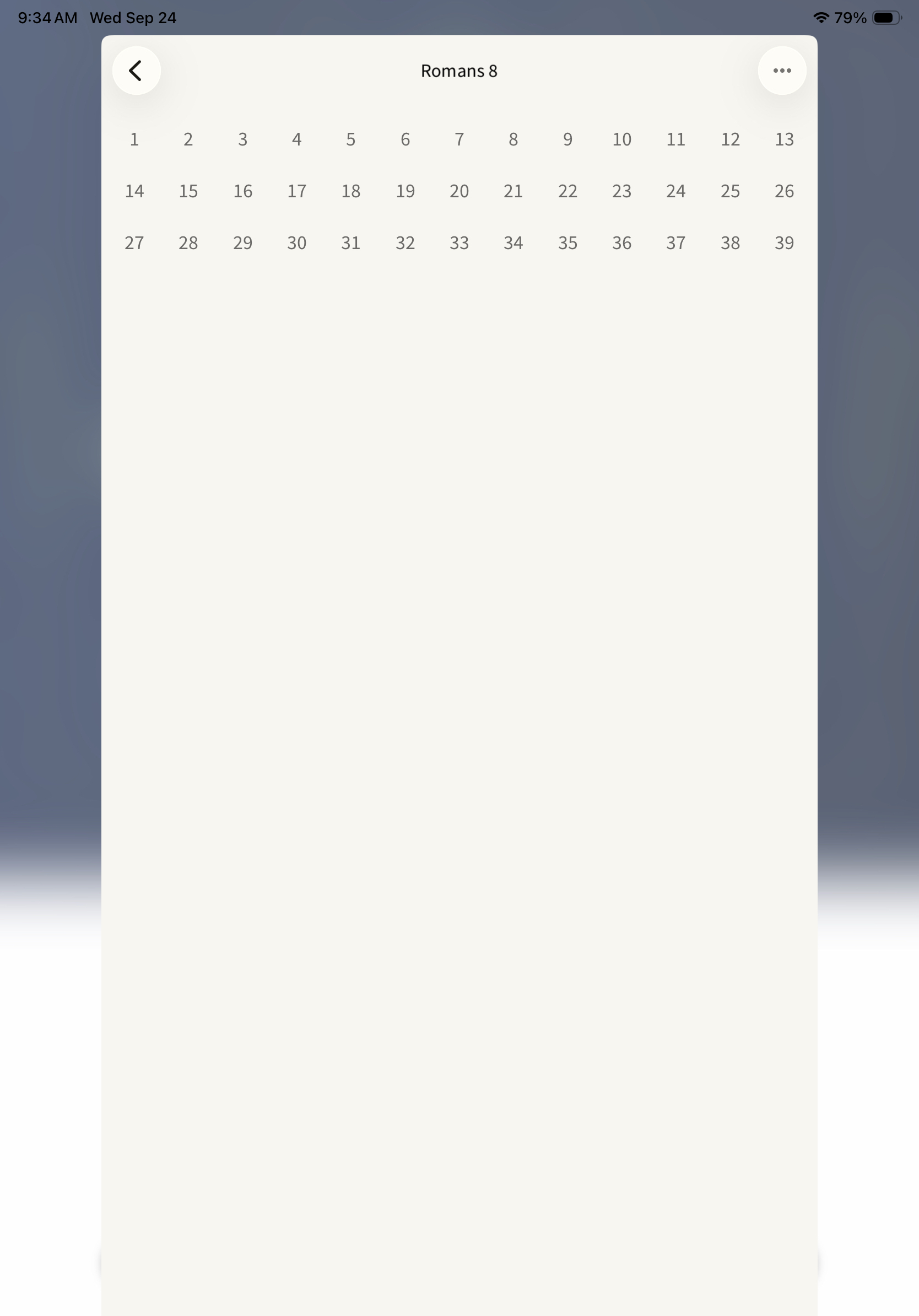 Next, tap on any number to choose a chapter from the Bible book you tapped on.