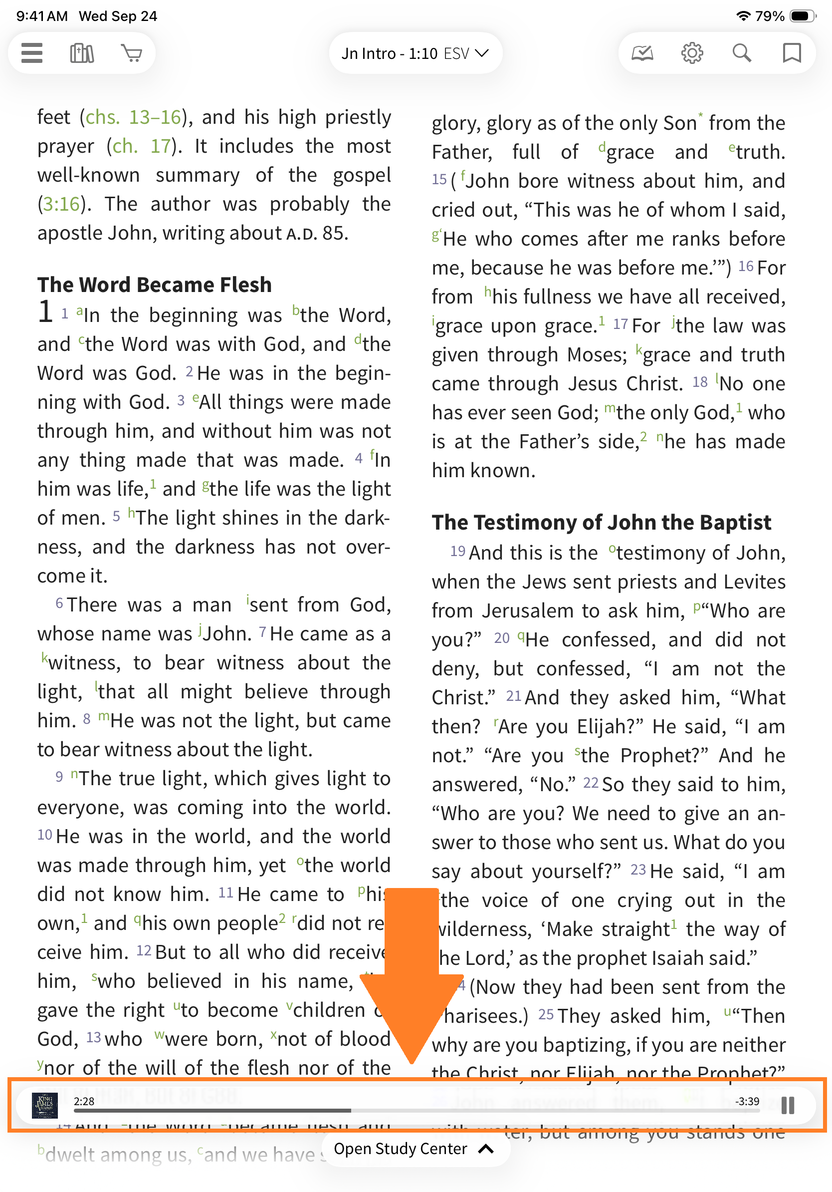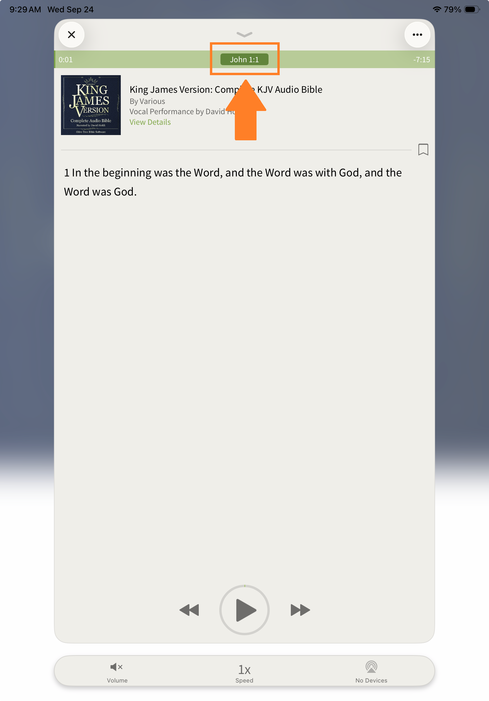 Finally, tap on any verse number. As soon as you tap on the number, the audio Bible will jump to that spot and begin to play.