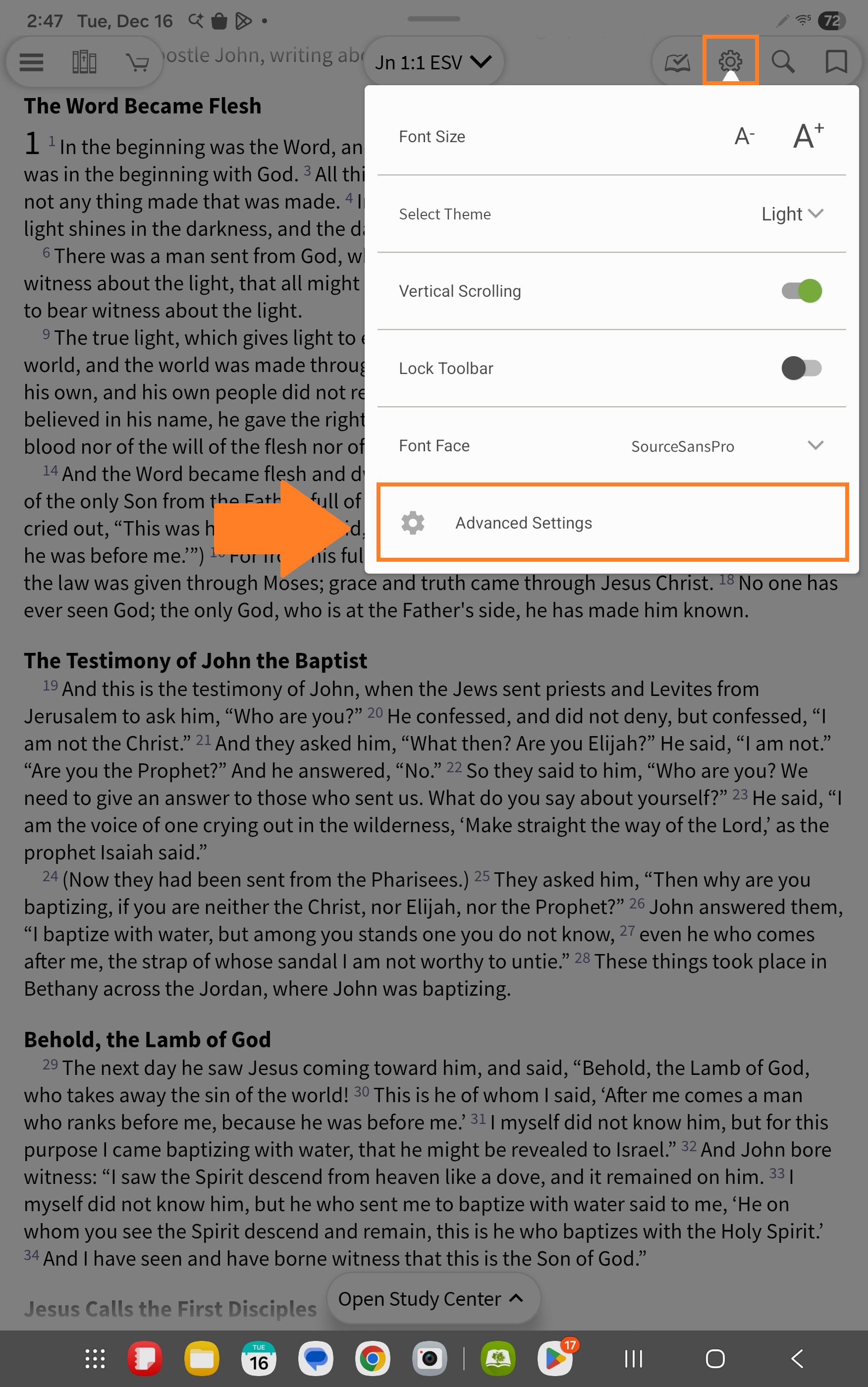 Tap the Settings icon on the toolbar and then 'Advanced Settings'.