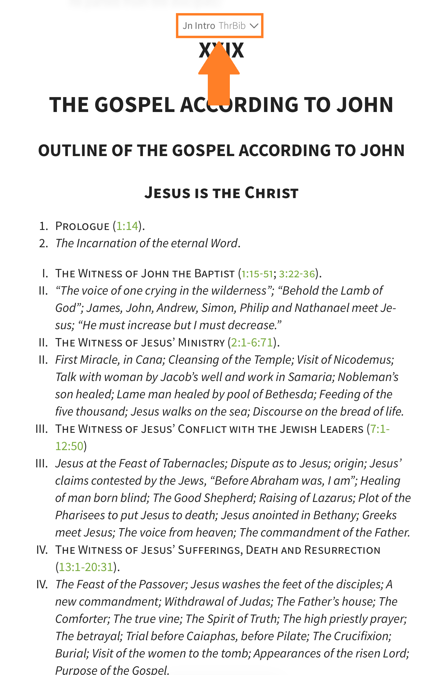 This will reveal the Table of Contents, so you can navigate anywhere in the resource.