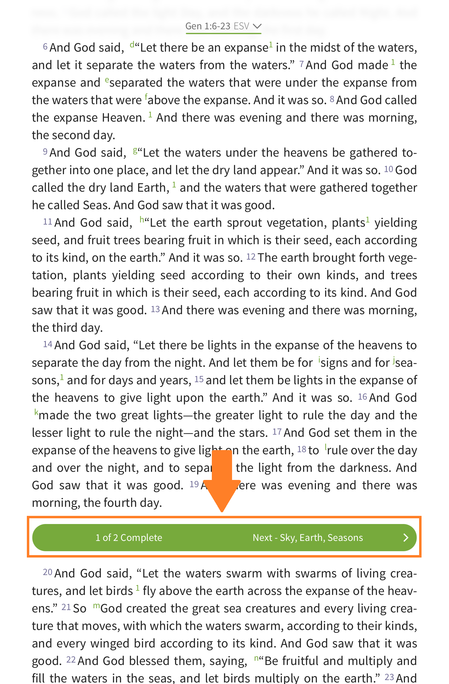 Each day, tap on the reading plan icon and 'Continue Reading' on the devotional to read the day's Bible text and commentary.