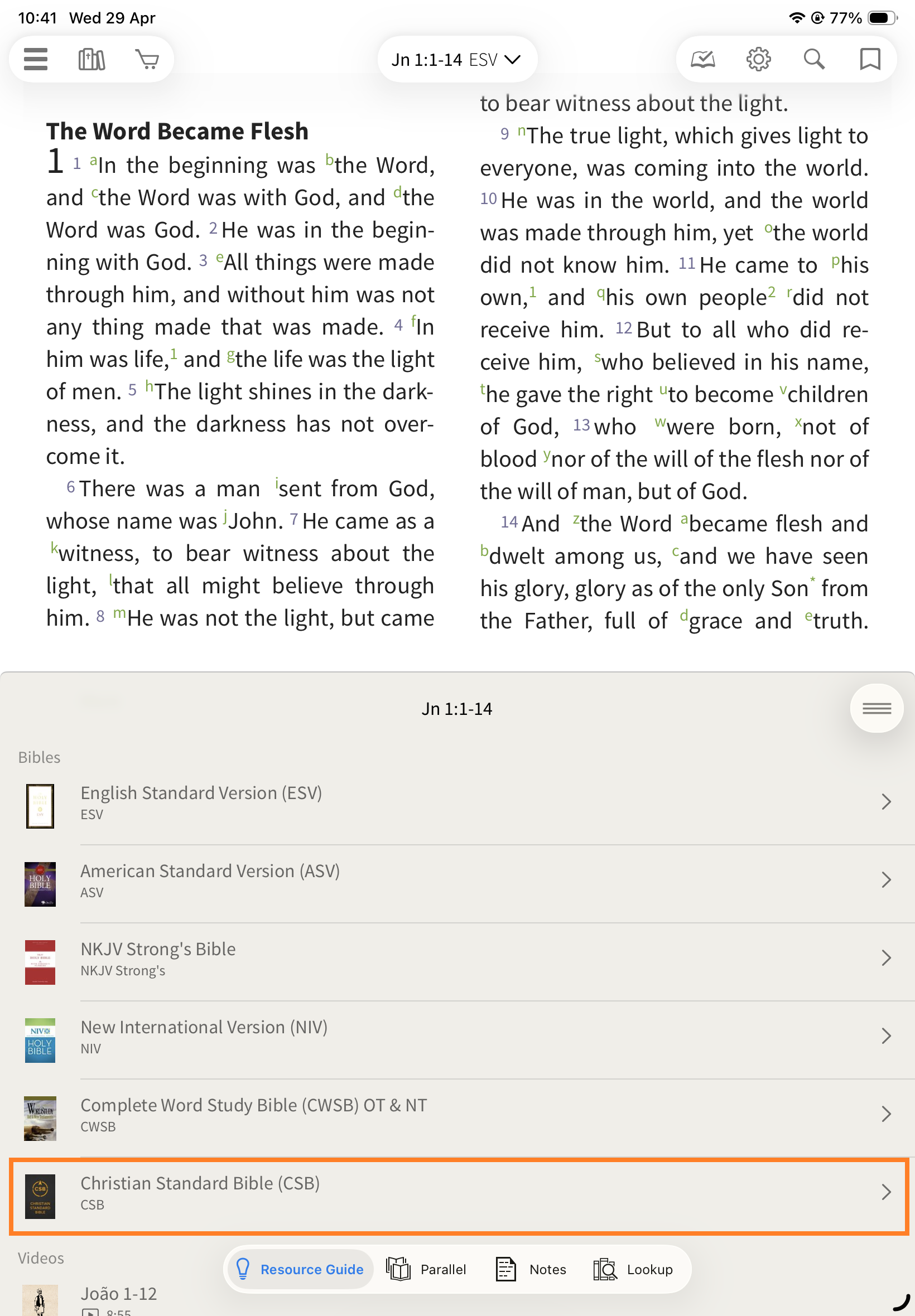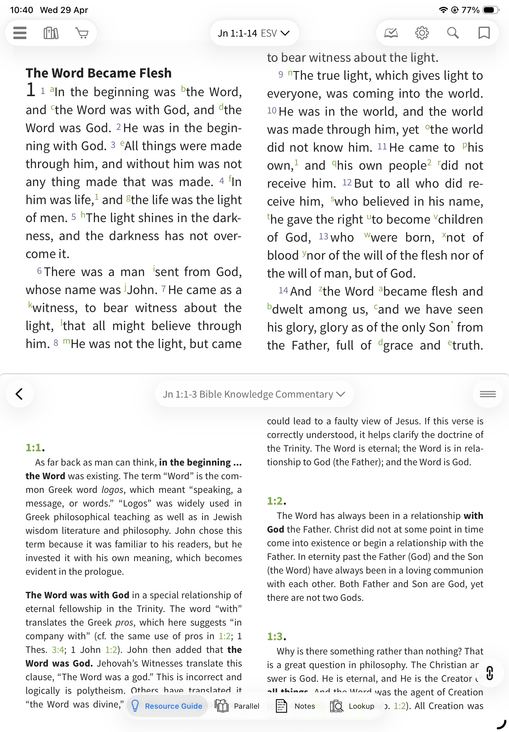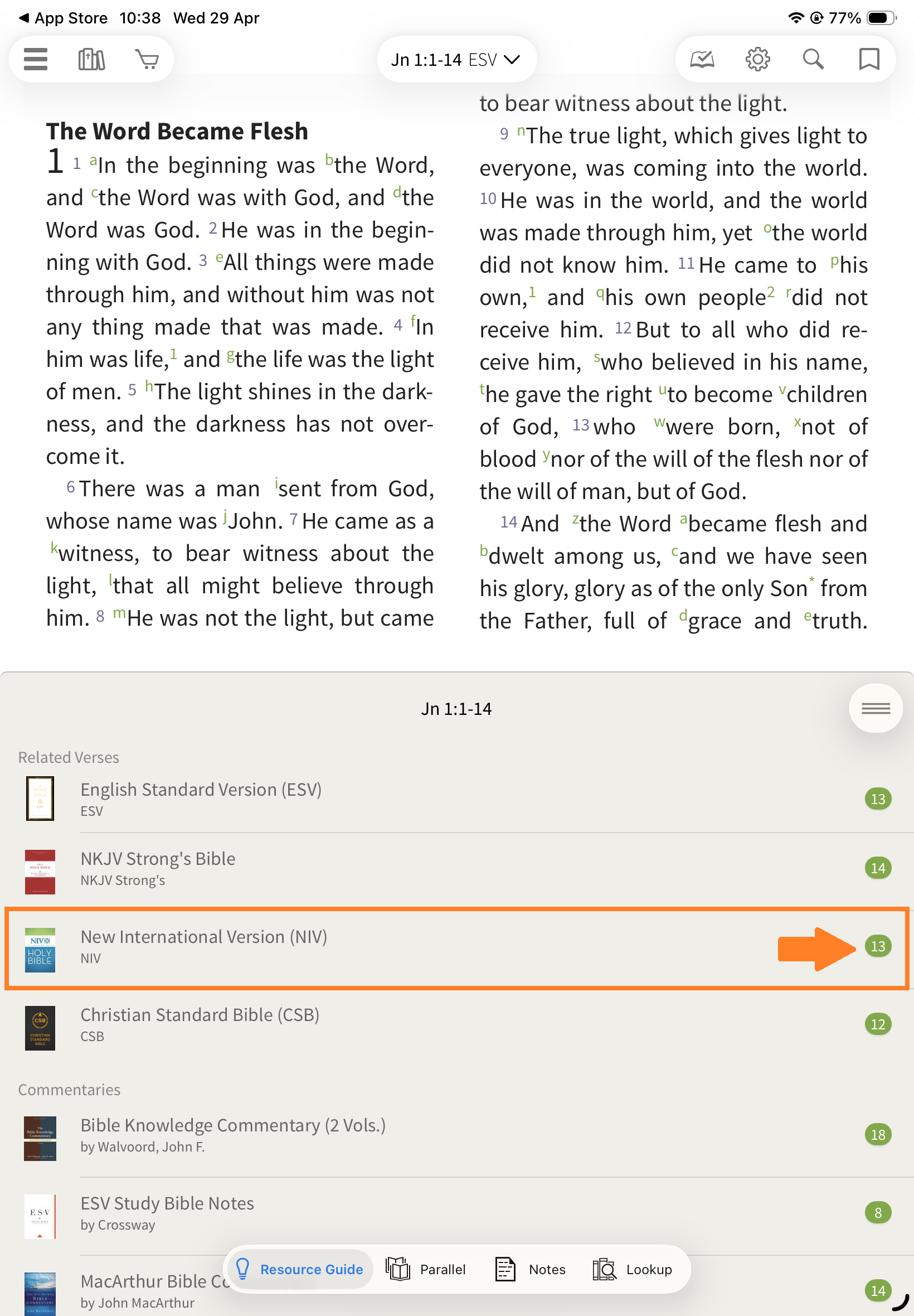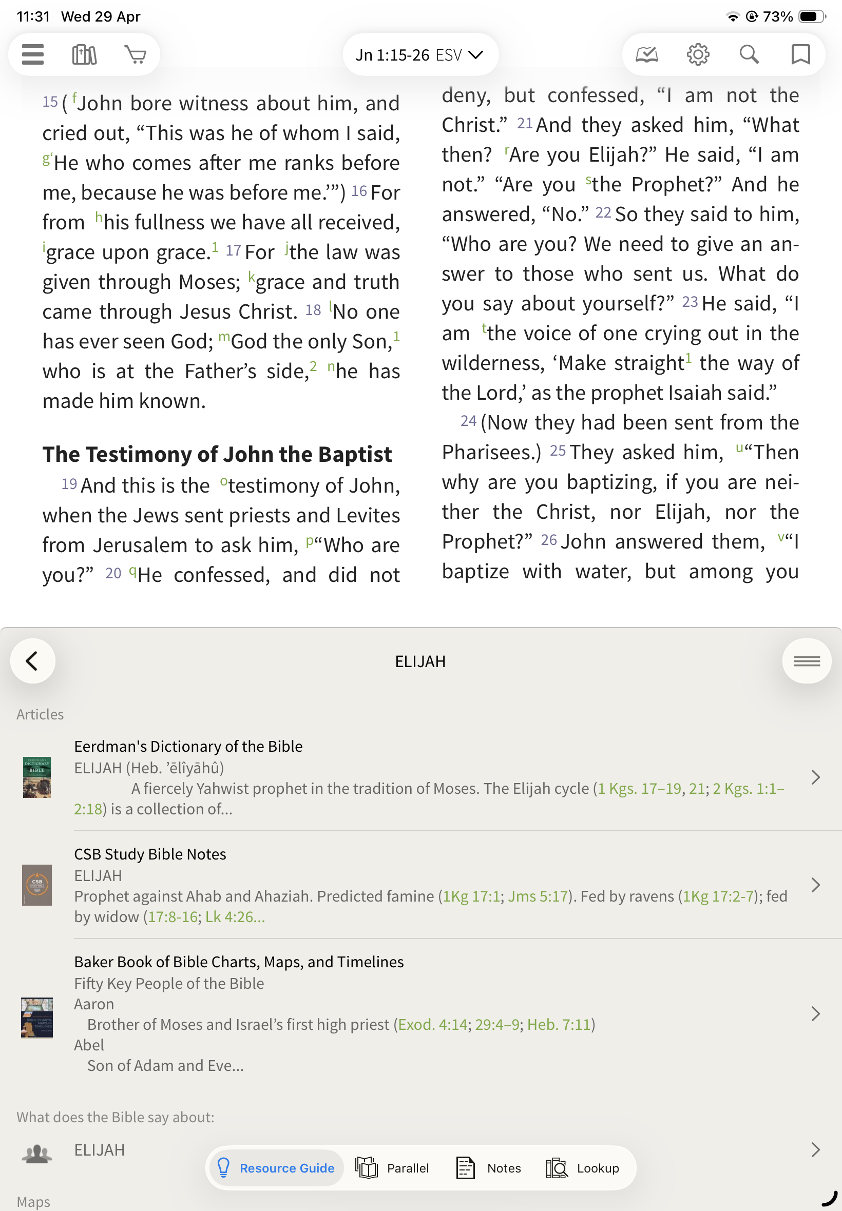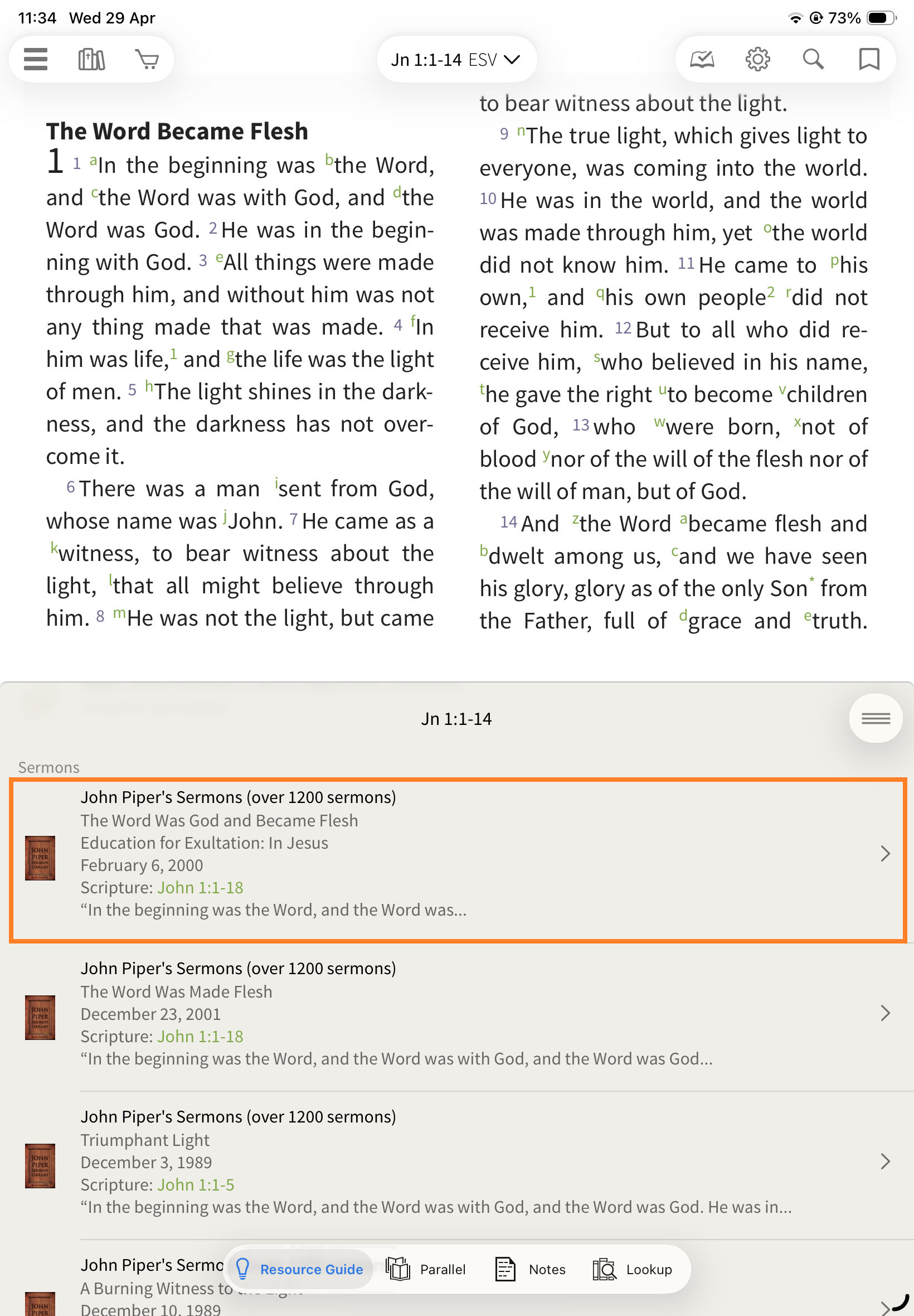 In the Olive Tree Bible App, the Resource Guide helps you quickly access all relevant study material for the passage you’re reading—without needing to manually search through your library.