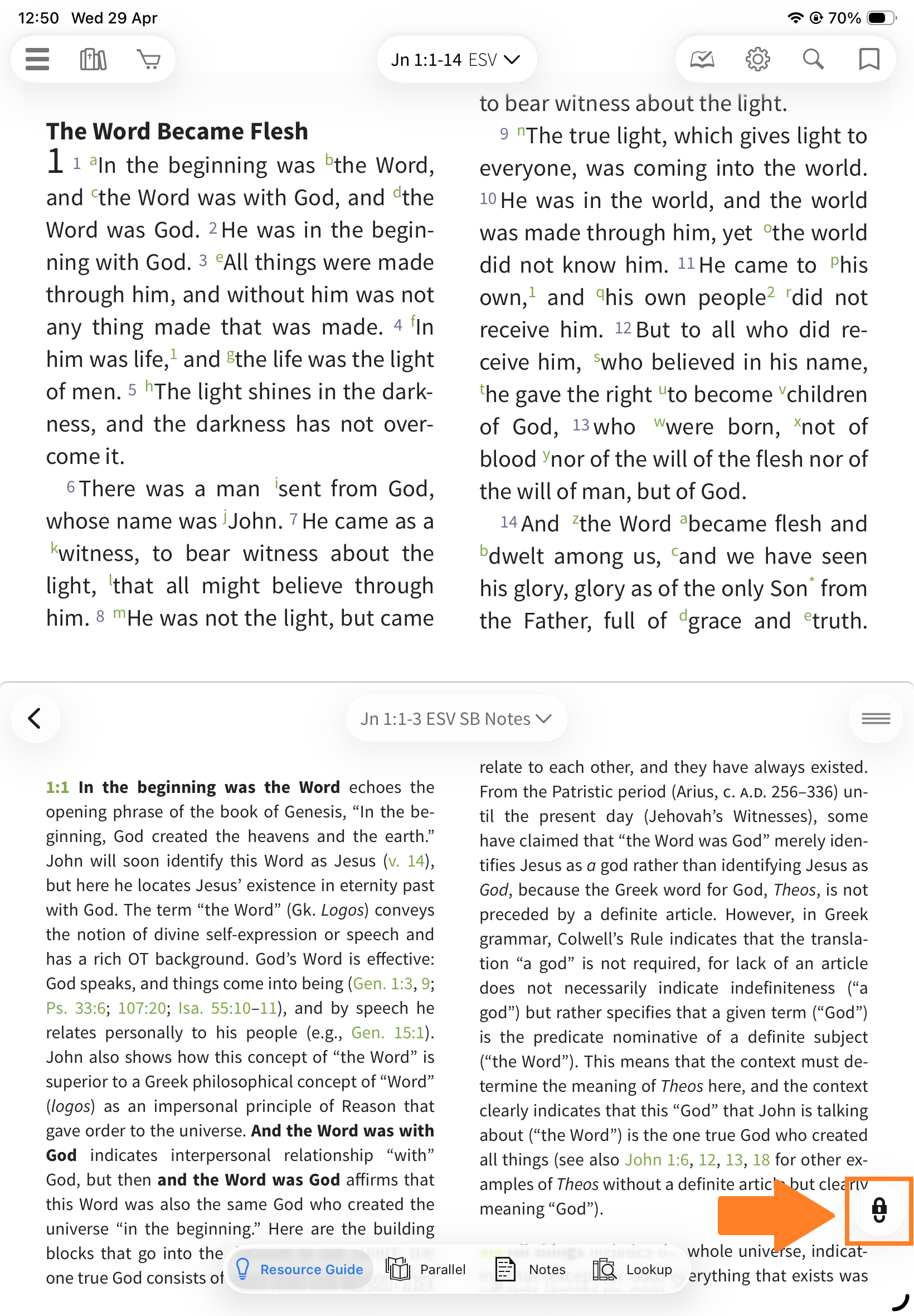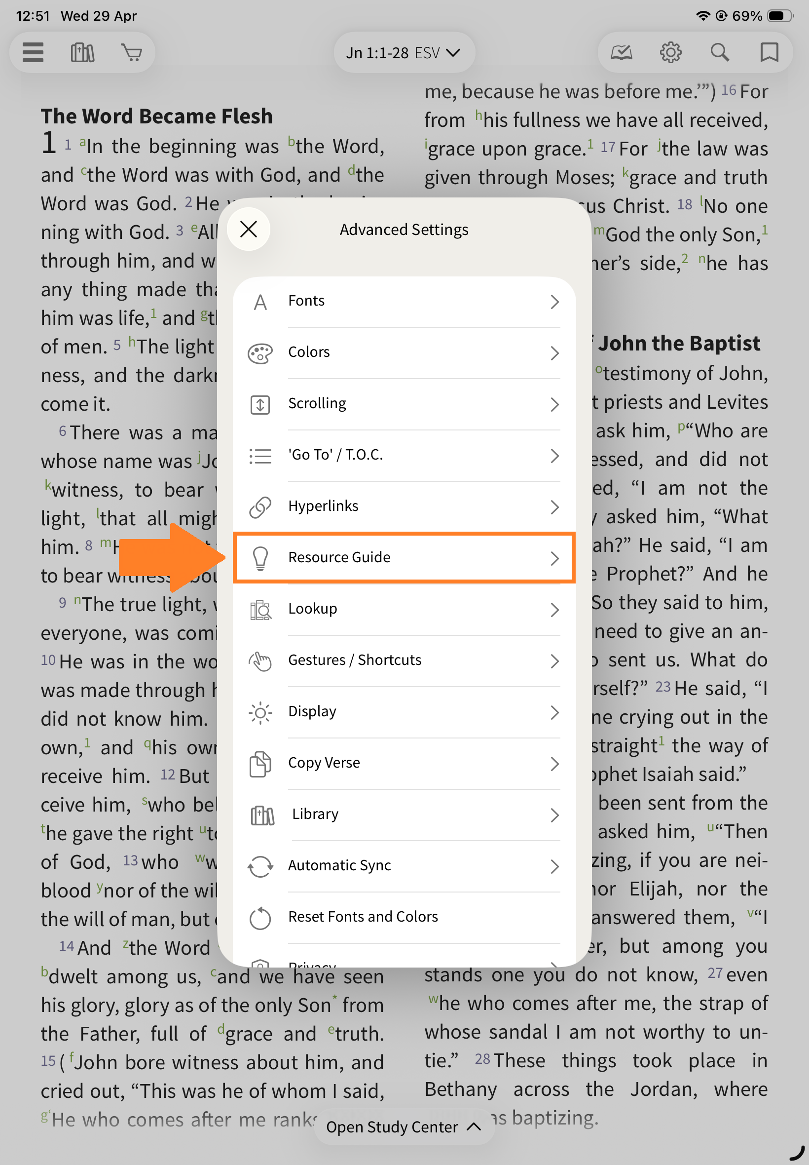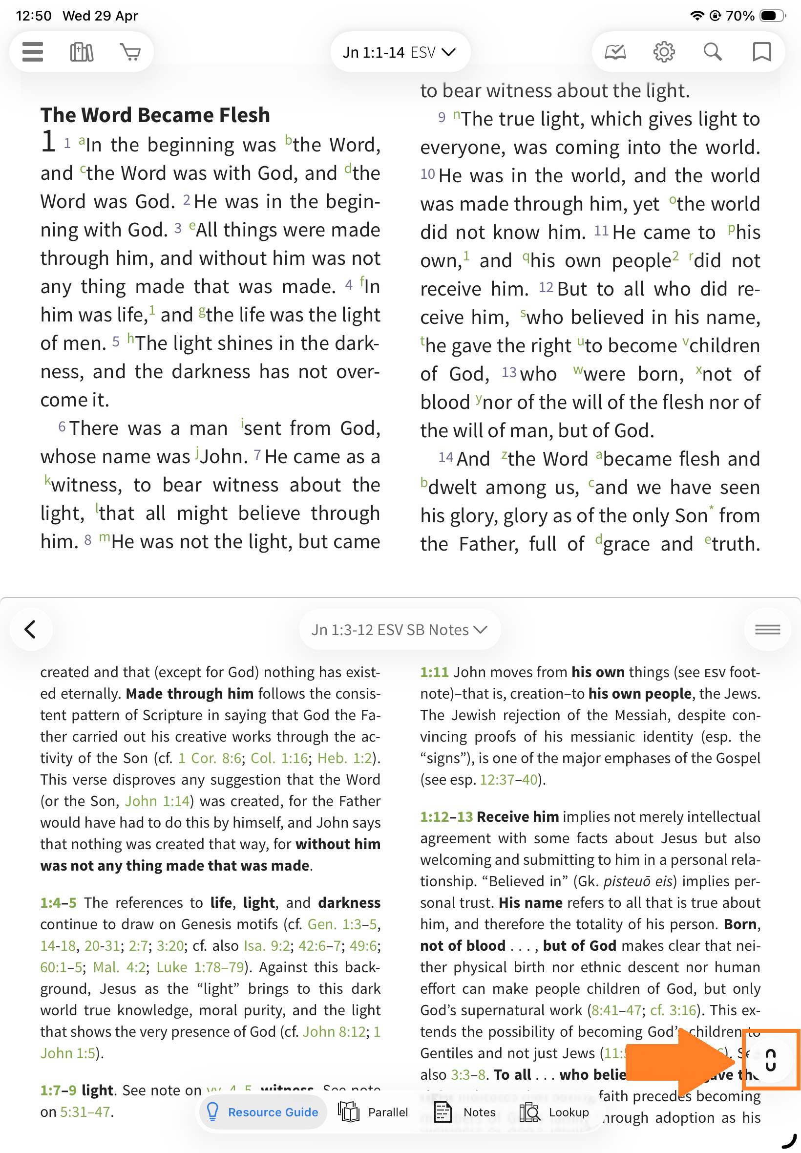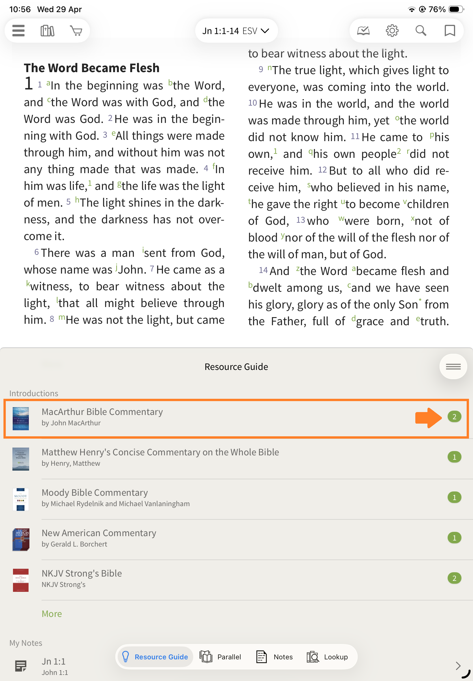 Locked: The Resource Guide updates automatically as you scroll your Bible