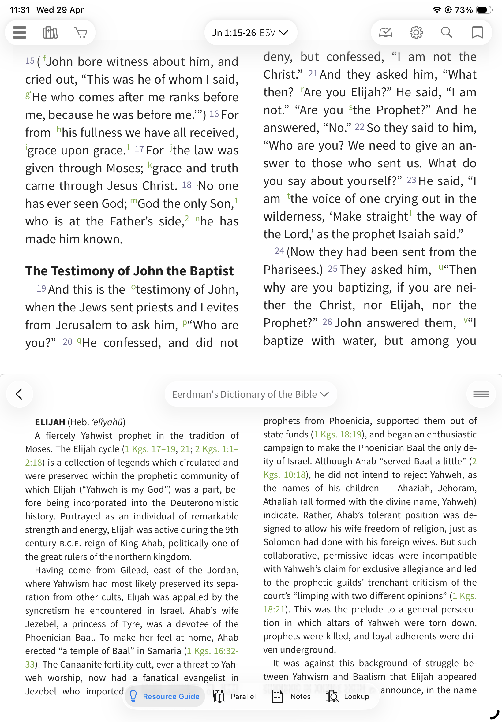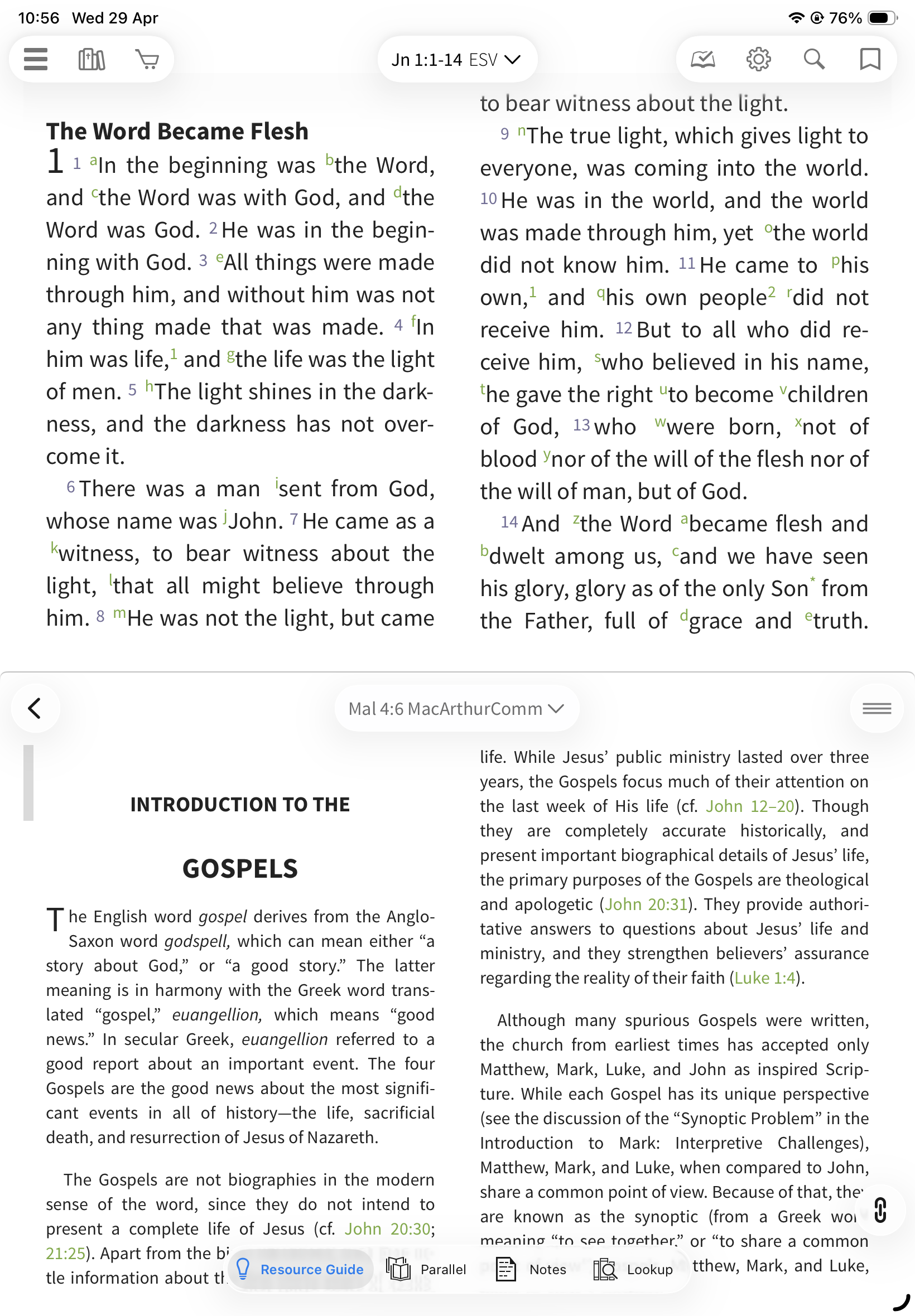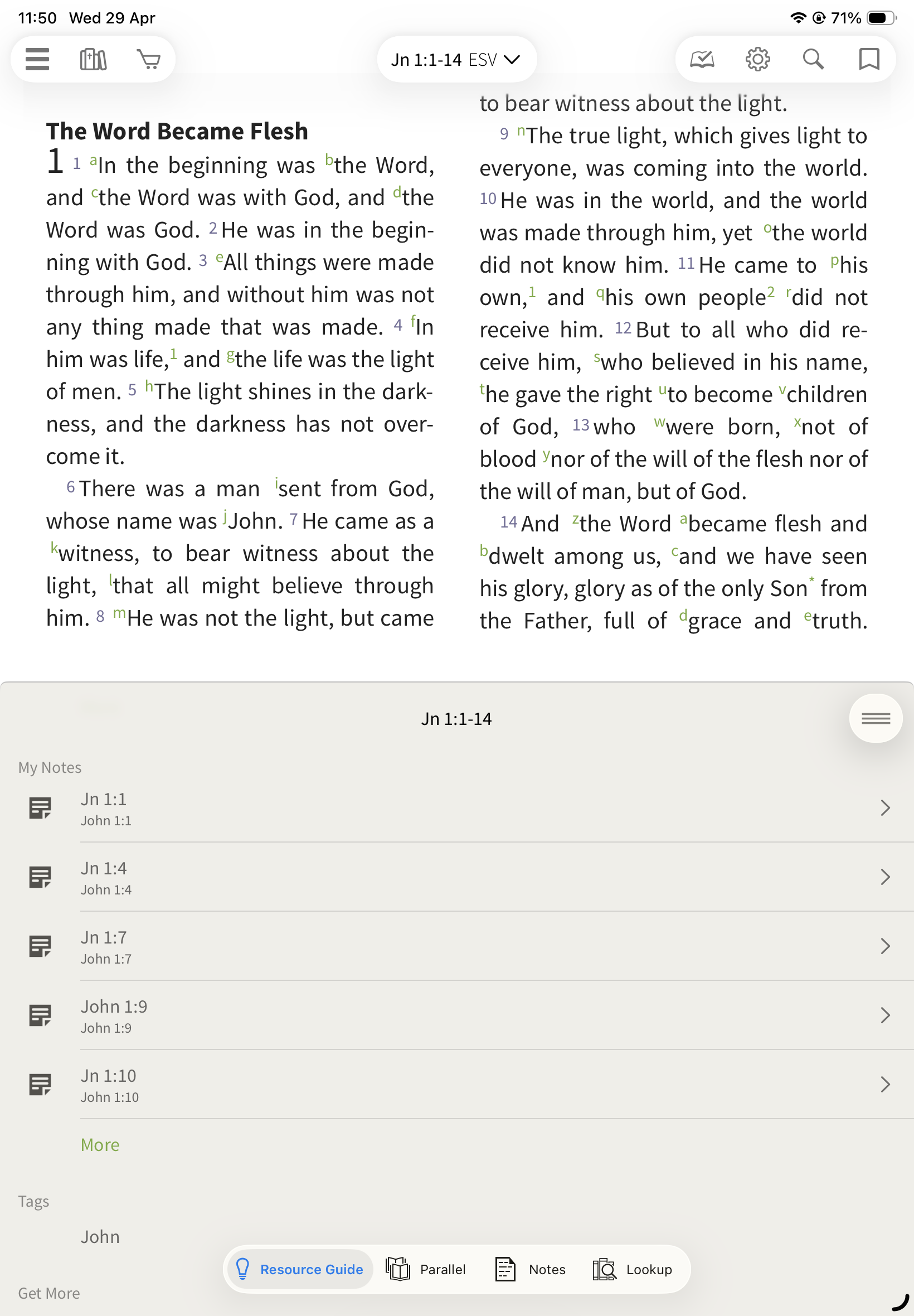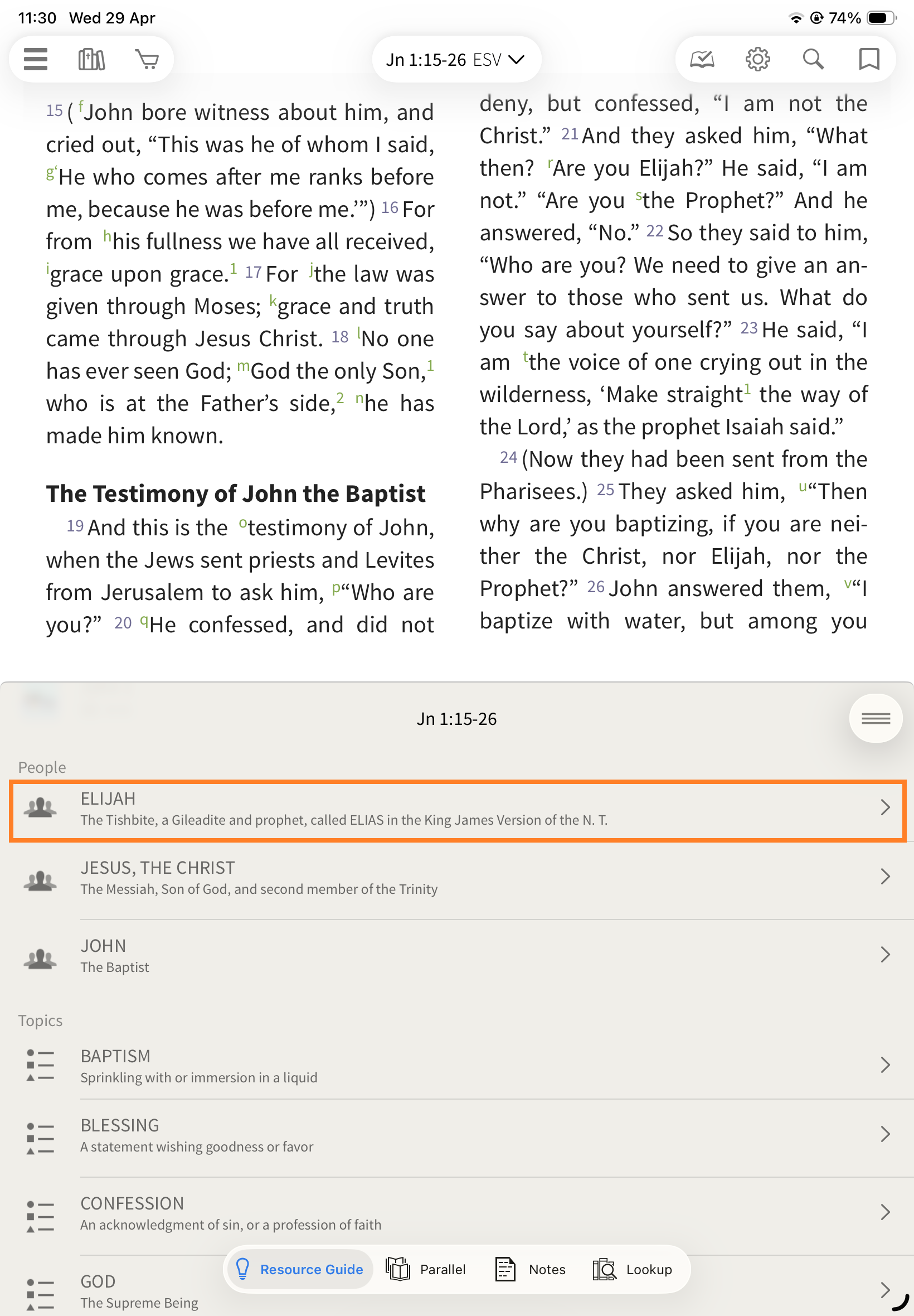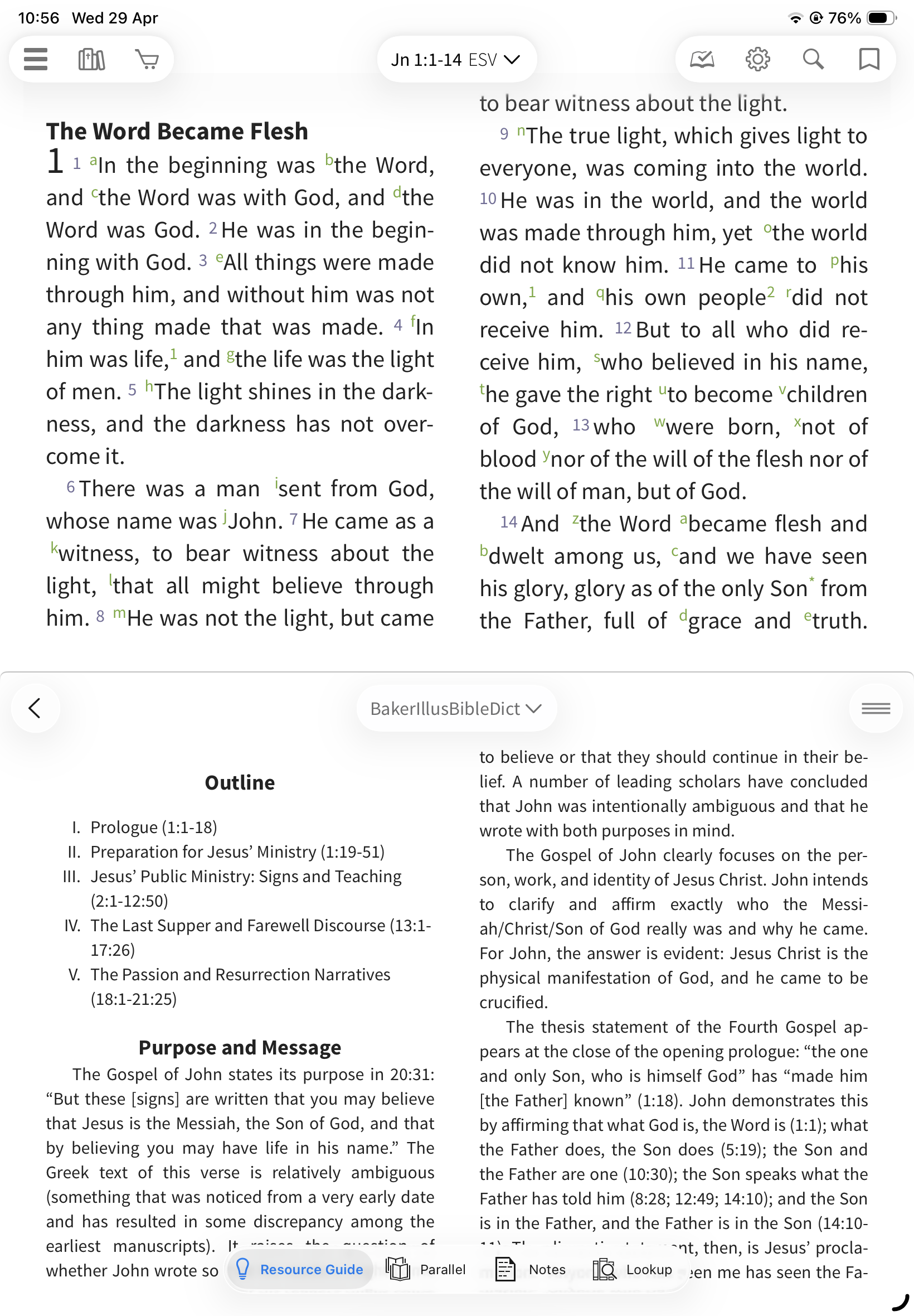 Locked: The Resource Guide updates automatically as you scroll your Bible
