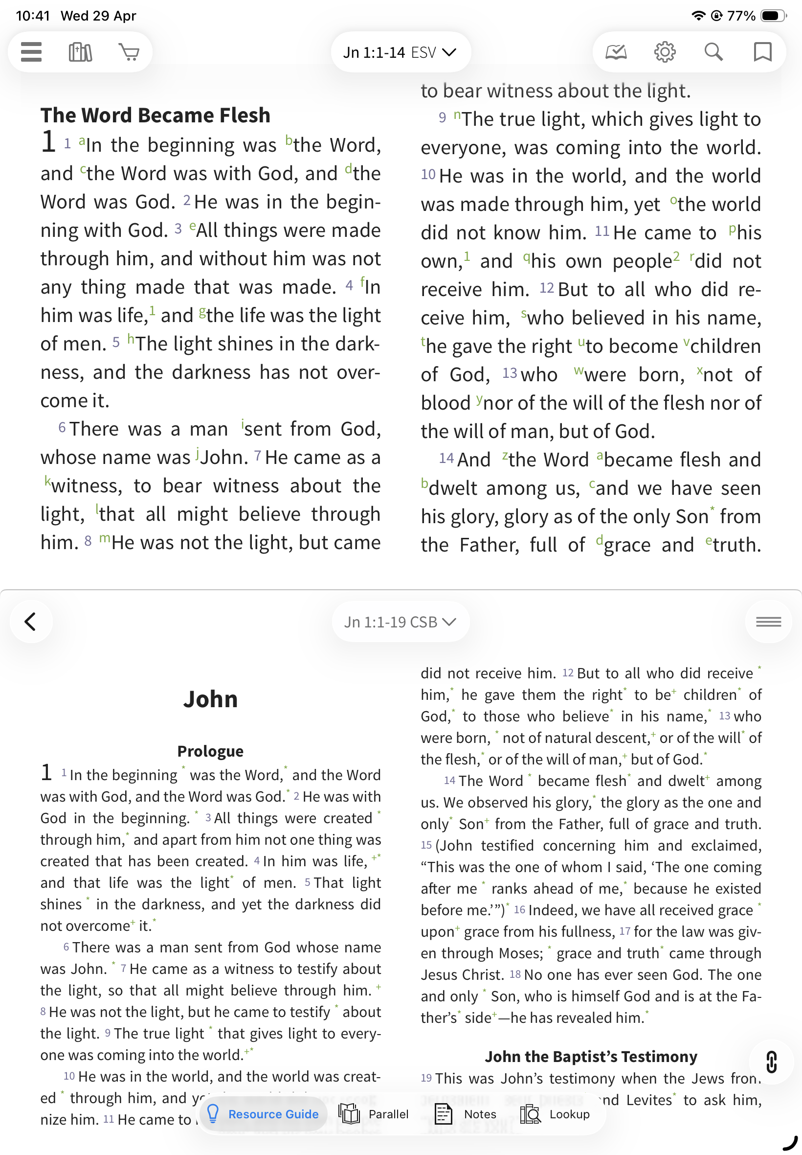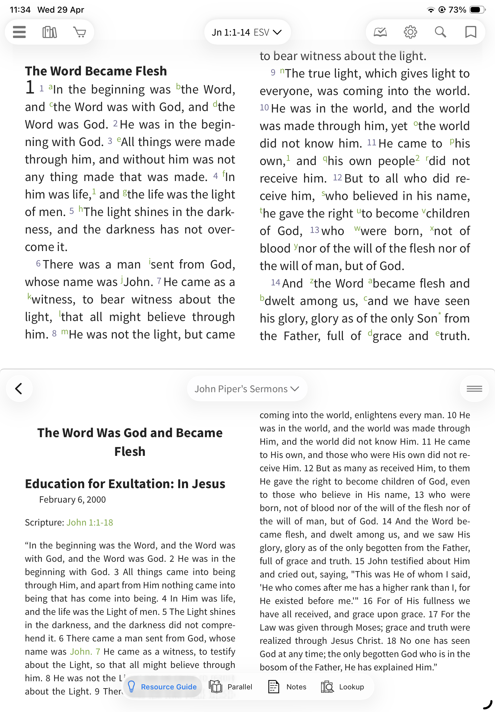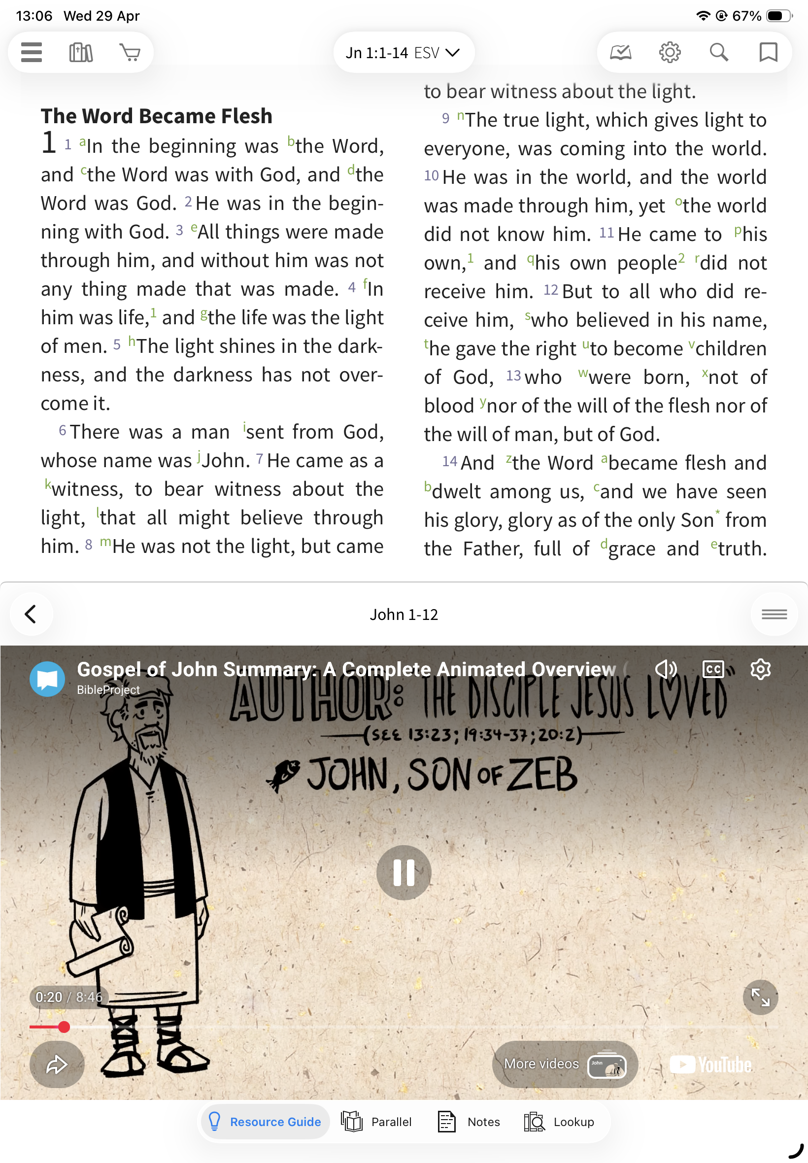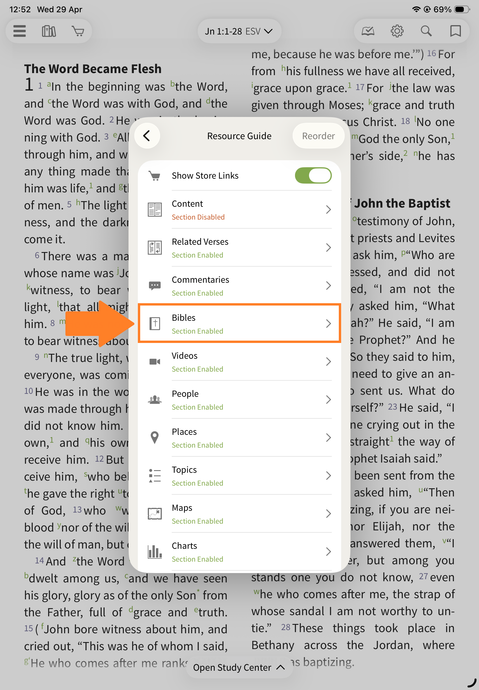 Locked: The Resource Guide updates automatically as you scroll your Bible